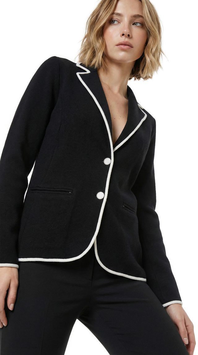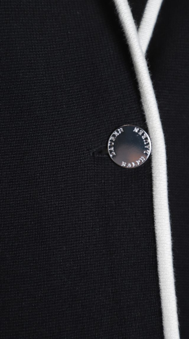 Новый трикотажный жакет Ralph Lauren черного цвета с контрастной белой окантовкой. Застегивается на стильные фирменные пуговки с гравировкой бренда Ralph Lauren. Свободный прямой, слегка приталенный, фасон. Врезные кармашки по переду. В составе: 75% хлопок, 25% нейлон, без подклада — ткань плотная, тянется. Элегантный вариант в любое время года. Оригинал, привезен из США. Продается с биркой магазина Ralph Lauren — цена на бирке 165$.