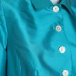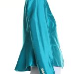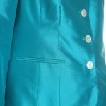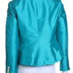 Новый шелковый жакет Ralph Lauren яркого бирюзового цвета. Полу-приталенный фасон с длинным рукавом и застежкой на фирменные перламутровые пуговки. Классический отложной воротничок. Врезные кармашки по переду. В составе: 100% натуральный шелк, на подкладе из 100% натурального ацетата — ткань легкая, с характерным шелковым блеском, по фактуре «чесуча» (дикий прочный шёлк с удивительной фактурой нитей разной толщины). Фирменное качество элитного бренда. Состояние — новое, с оригинальной биркой магазина Ralph Lauren. Цена на бирке — 275$.