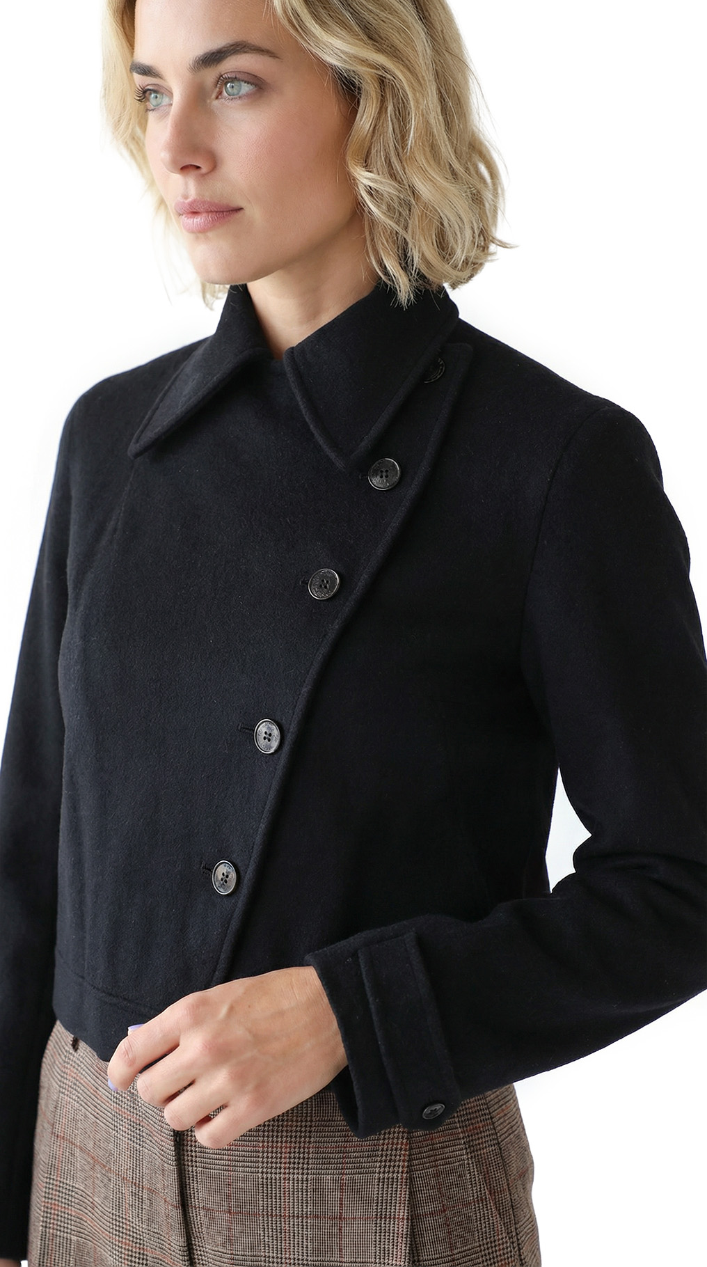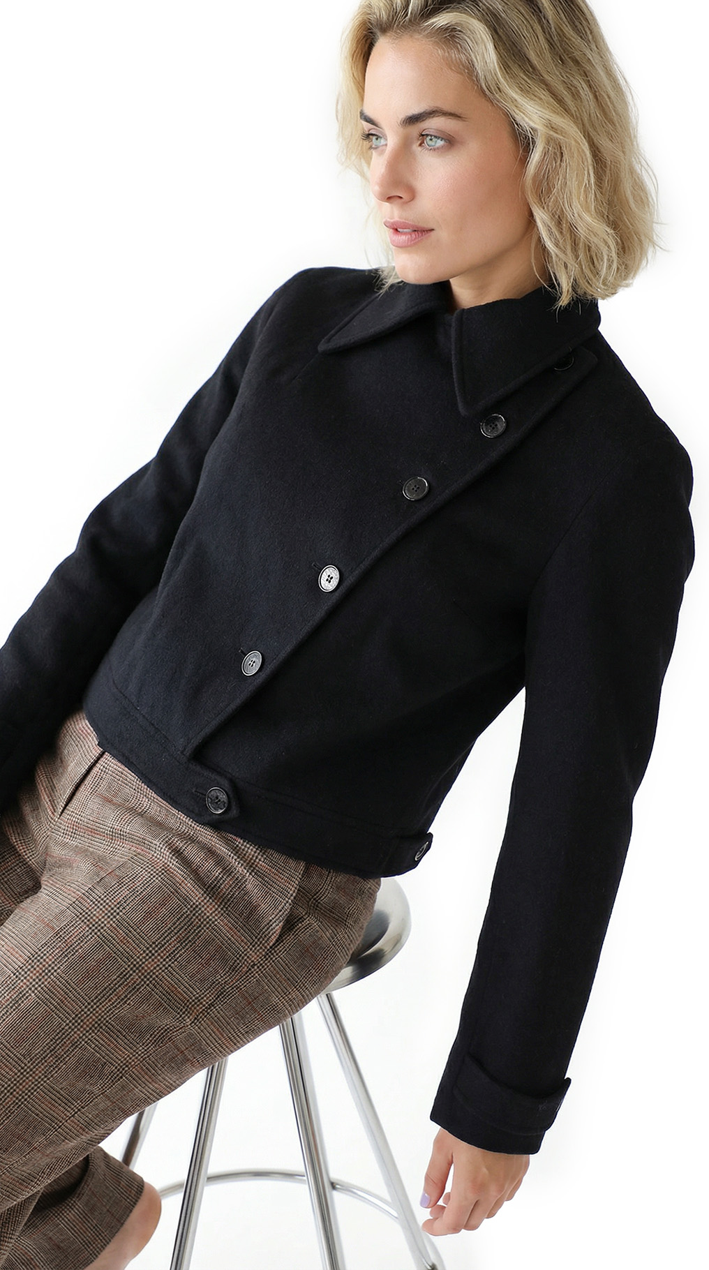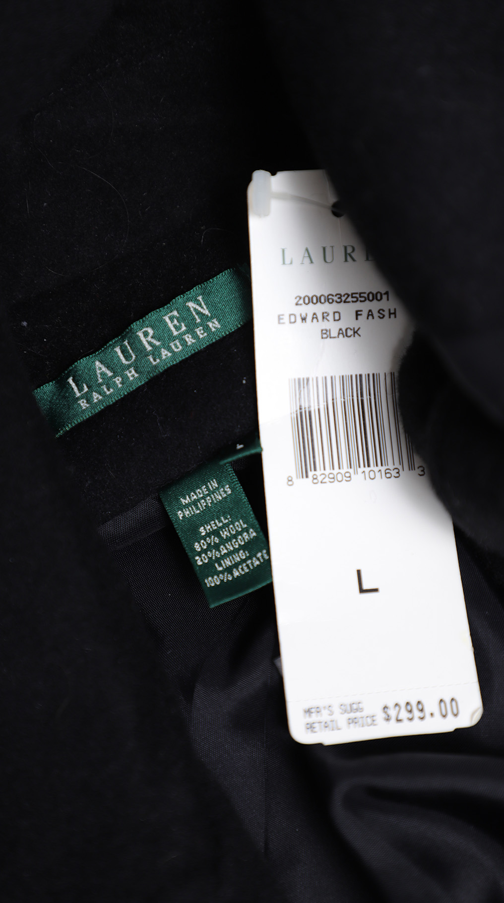 Новый шерстяной жакет американского премиального бренда Ralph Lauren черного цвета. Модный укороченный фасон-трансформер: борт можно застегнуть до конца или отвернуть в отложной воротничок. Ремешки на талии и рукавах. Фирменная фурнитура с гравировкой бренда. В составе: 80% шерсть, 20% ангора, на подкладе из 100% натурального ацетата — теплый, мягкий и комфортный в носке. Оригинал из США. Состояние — новое, с фирменной биркой Ralph Lauren. Цена на бирке — 299$.