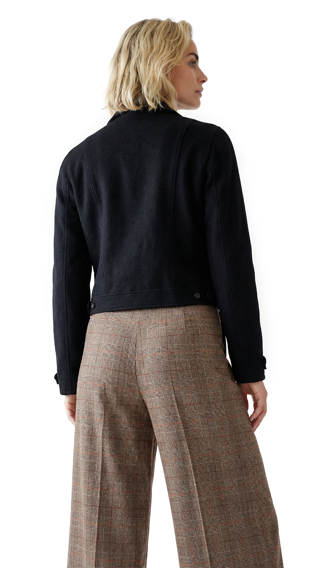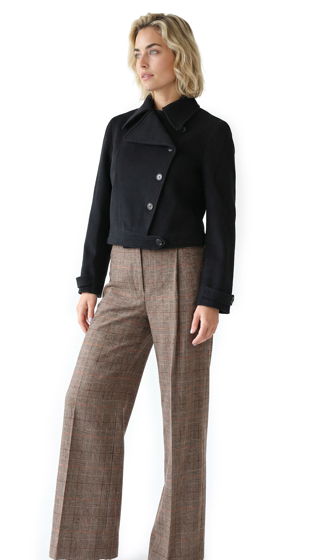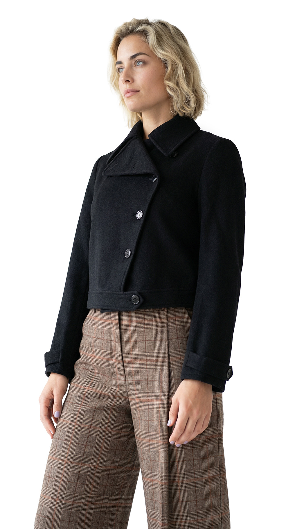 Новый шерстяной жакет американского премиального бренда Ralph Lauren черного цвета. Модный укороченный фасон-трансформер: борт можно застегнуть до конца или отвернуть в отложной воротничок. Ремешки на талии и рукавах. Фирменная фурнитура с гравировкой бренда. В составе: 80% шерсть, 20% ангора, на подкладе из 100% натурального ацетата — теплый, мягкий и комфортный в носке. Оригинал из США. Состояние — новое, с фирменной биркой Ralph Lauren. Цена на бирке — 299$.
