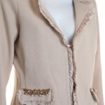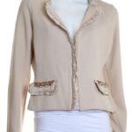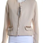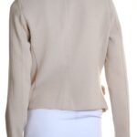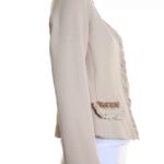 Новый жакет итальянского бренда Rinascimento нежного светло-кремового цвета. Женственный приталенный фасон с атласной окантовкой горловины и рукавов, и жемчужно-золотыми бусинами на фальш-кармашках. Застежка на потайные крючки. В составе — 85% п/э, 13% вискоза, 2% эластан — ткань средней плотности, мягкая, с фактурой букле, без подклада. Состояние — новое, с фирменной биркой Rinascimento.