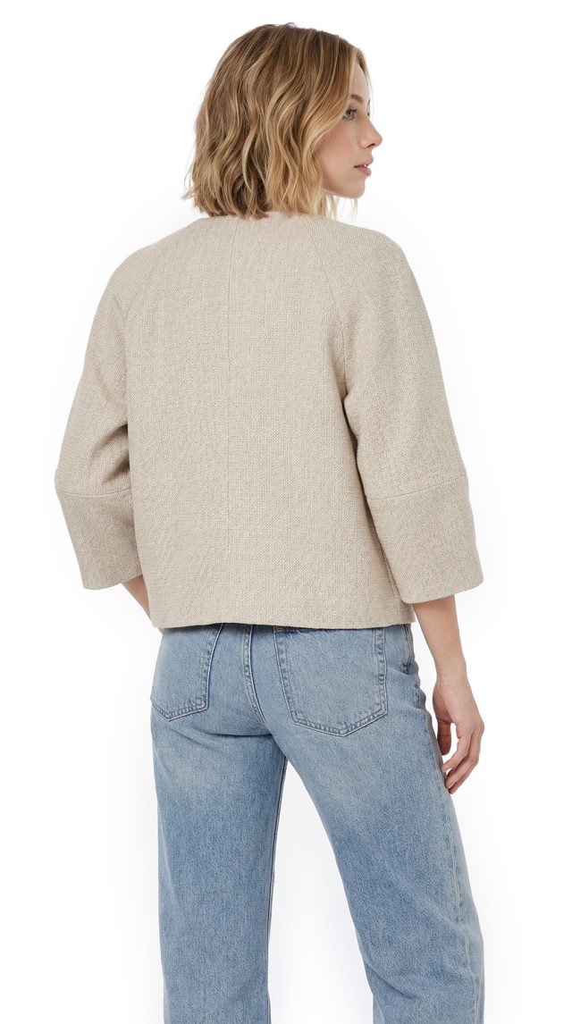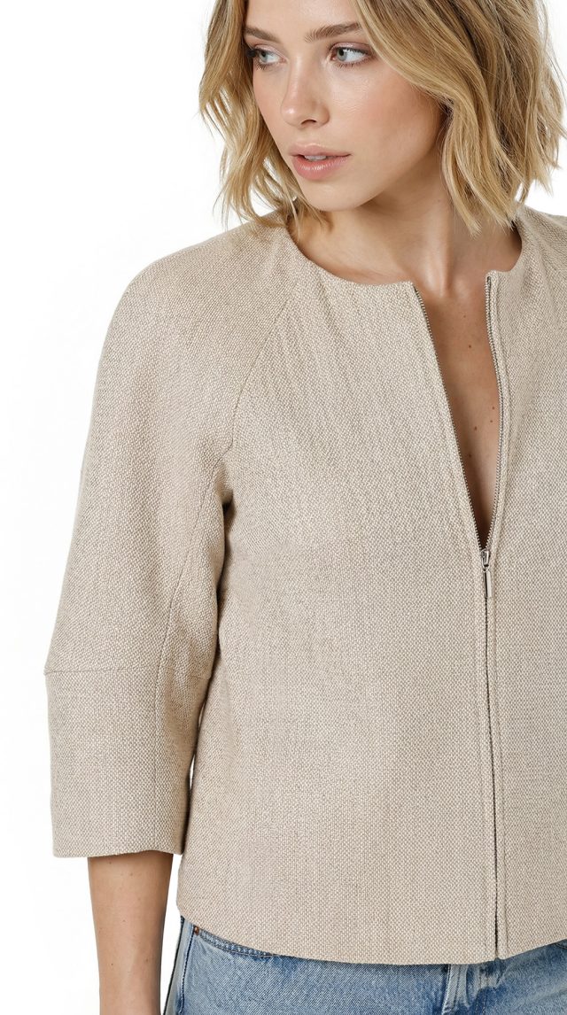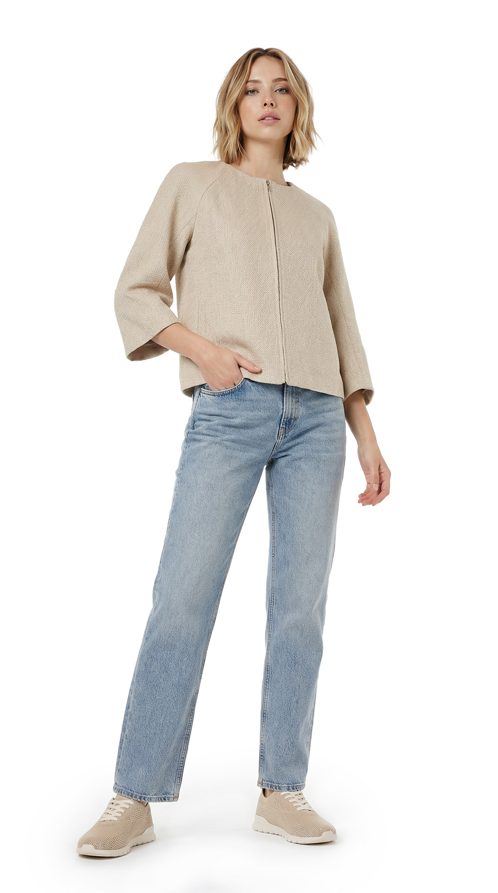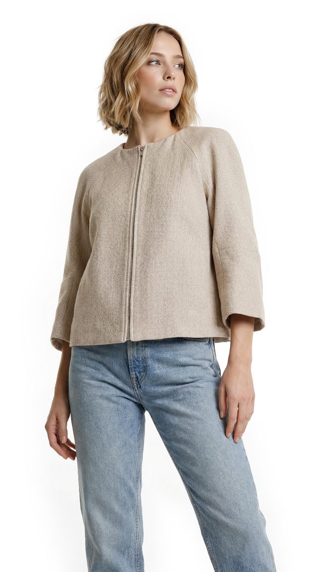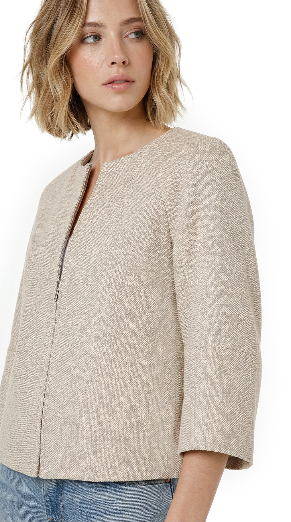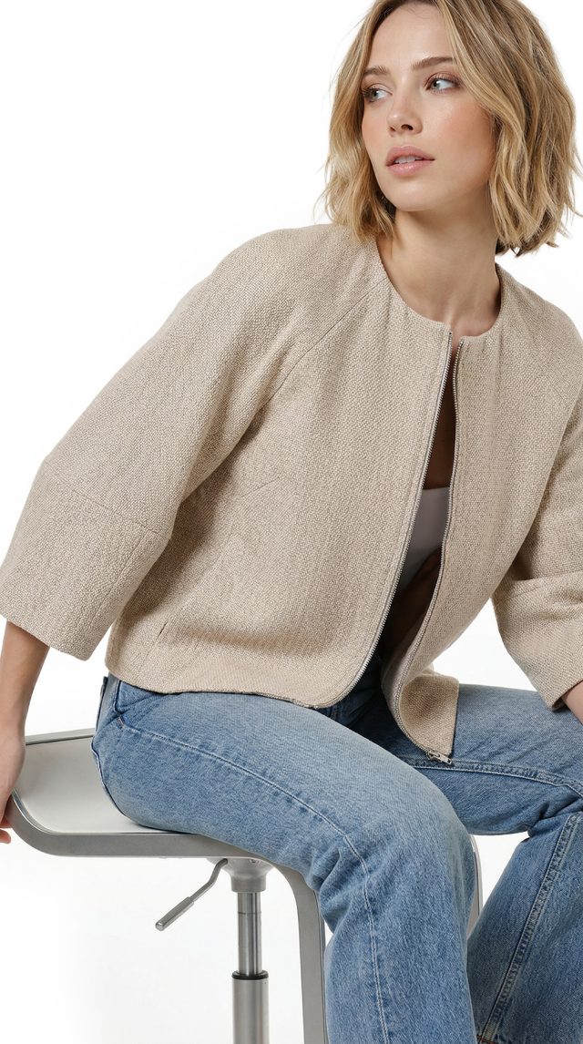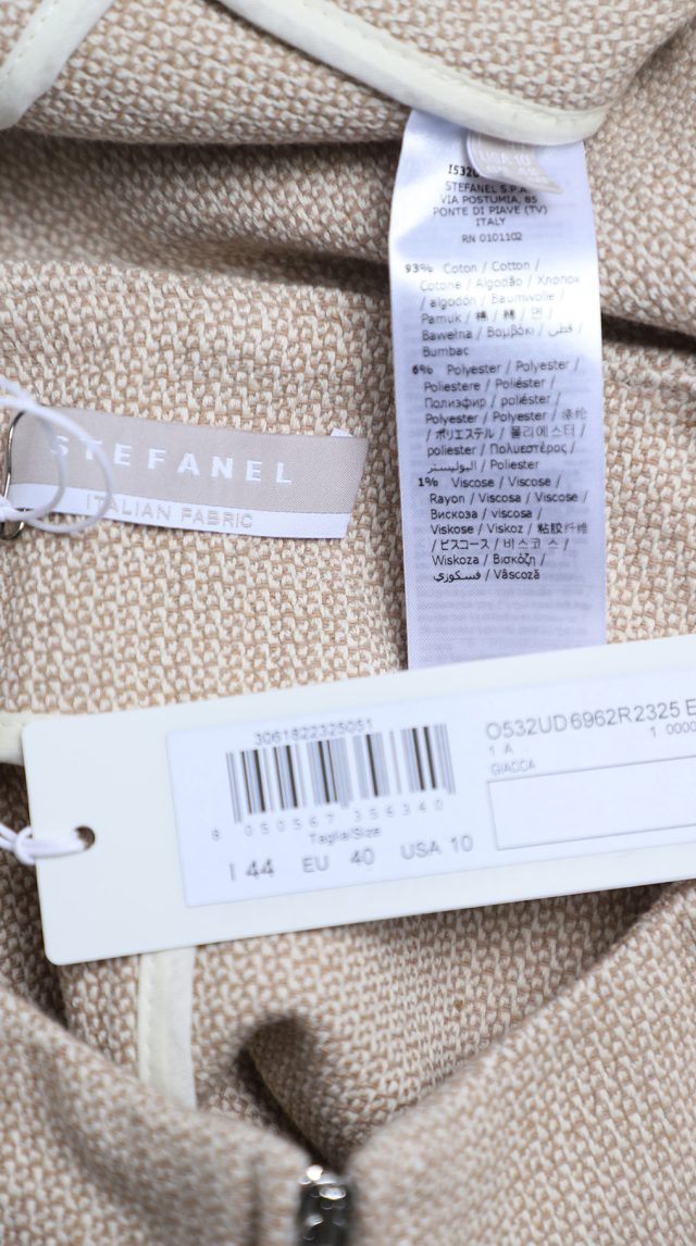 Новый хлопковый жакет итальянского премиального бренда Stefanel светло-бежевого цвета. Свободный укороченный фасон с широким рукавом-реглан длиной 3/4. Застежка по переду на молнию. В составе: 93% хлопок, 6% п.э, 1% вискоза — ткань плотная, без подклада. Состояние — новое, с фирменной биркой магазина Stefanel.