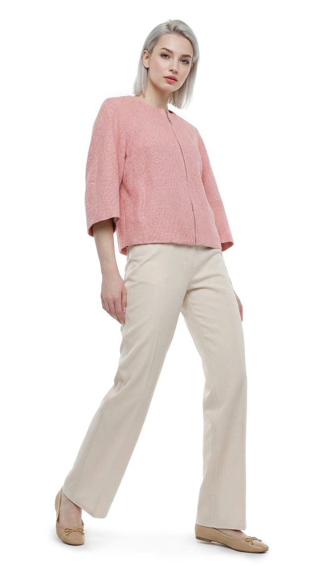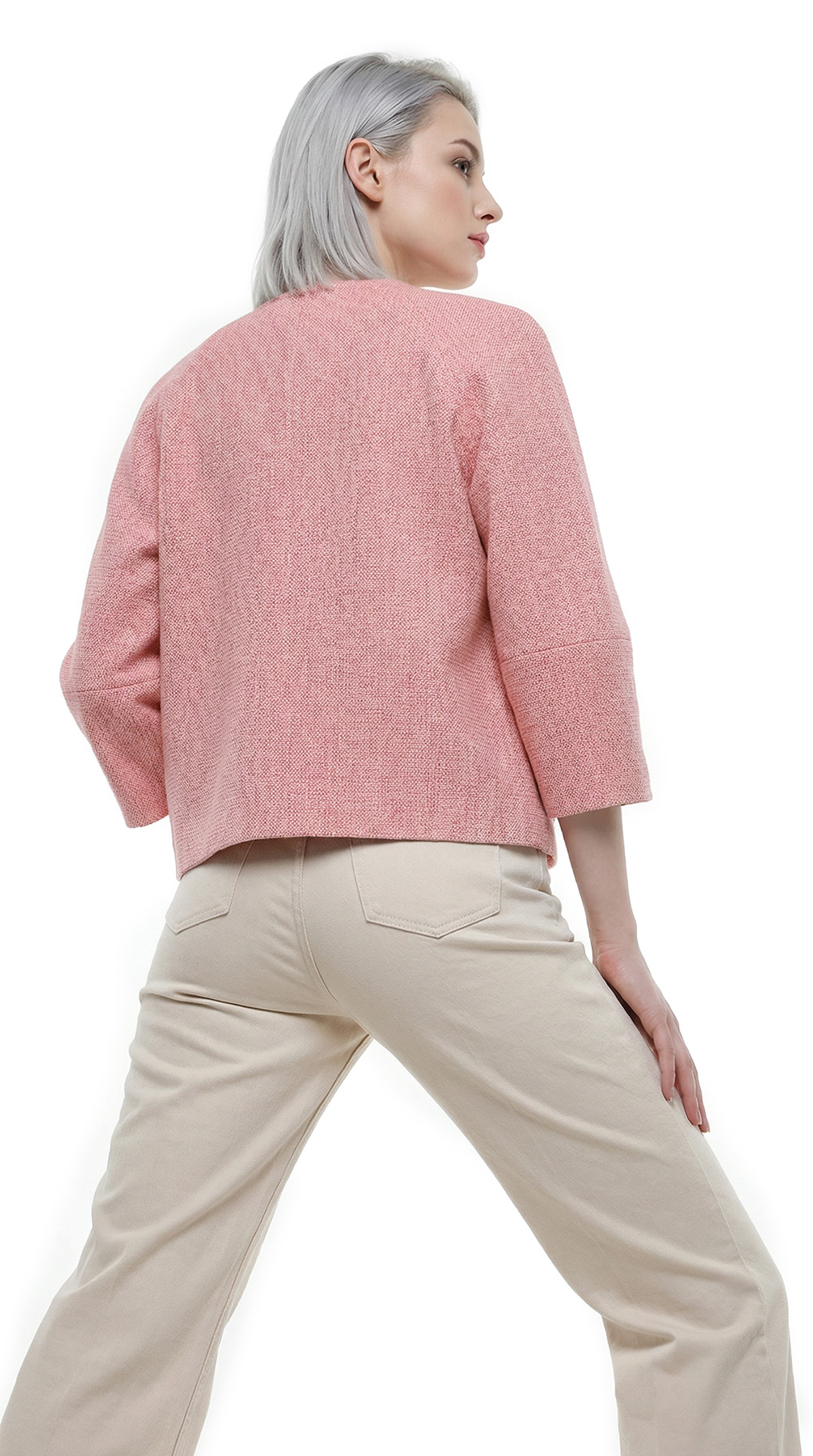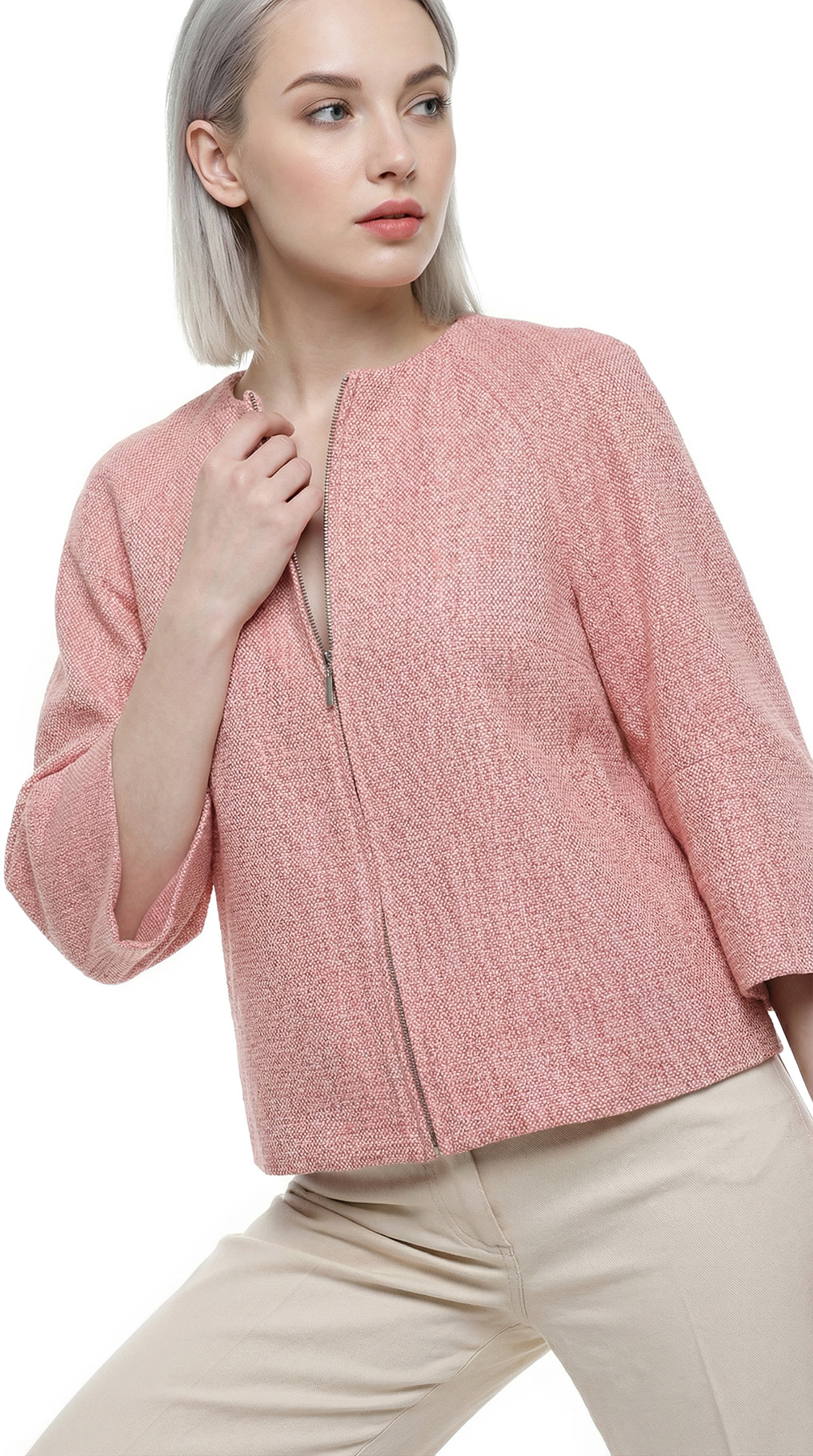 Новый хлопковый жакет итальянского премиального бренда Stefanel бледно-розового (лососевого) цвета. Свободный укороченный фасон с широким рукавом-реглан длиной 3/4. Застежка спереди на молнию. В составе: 93% хлопок, 6% п.э, 1% вискоза — ткань плотная, без подклада. Состояние — новое, с фирменной биркой магазина Stefanel.