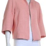 Новый хлопковый жакет итальянского премиального бренда Stefanel бледно розового (лососевого) цвета. Свободный укороченный фасон с широким рукавом-реглан длиной 3/4. Застежка по переду на молнию. В составе 93% хлопок, 6% п.э, 1% вискоза — ткань плотная, без подклада. Состояние — новое, с фирменной биркой магазина Stefanel.
