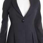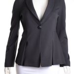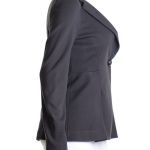 Стильный трикотажный жакет премиального итальянского бренда Armani Collezioni графитового цвета. Женственный фасон с глубоким вырезом декольте и складочками, подчеркивающими талию и линию бедер. Застегивается на стильную пуговку. В составе: 77% вискоза, 17% полиамид, 6% эластан, без подклада — ткань средней плотности, хорошо тянется и садится точно по фигурке. Идеально смотрится как с классическими брючками, так и джинсами. Оригинал, привезен из США. Состояние — идеальное, как новое.
