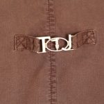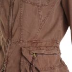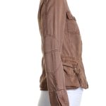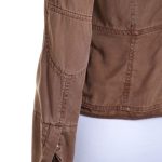 Жакет премиального итальянского бренда Trussardi (коллекция Jeans) медно-коричневого цвета. Стильный приталенный фасон с воротничком «стойка» и длинным рукавом, декорированным «заплаткой» на локтях. Фирменная фурнитура с гравировкой бренда (пуговки, шлевка по спинке). Накладные кармашки на груди, большие кармашки по бедрам. Застежка на молнию. Молния на манжетах рукавов. В составе: 100% лиоцелл, без подклада — ткань легкая, мягкая. Состояние — отличное.