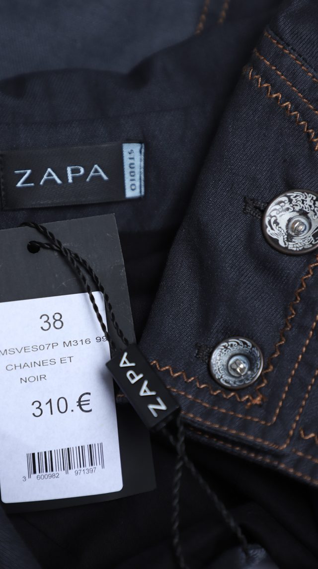 Новый дизайнерский жакет французского бренда класса «люкс» Zapa Paris темно-серого цвета с контрастной рыжей отстрочкой и пуговками, расписанными вручную. Женственный приталенный фасон с длинным рукавом и глубоким вырезом горловины с резным воротничком. Застежка на пуговки. Большие накладные кармашки. Шличка по спинке для комфортной посадки. Премиальное качество пошива и материалов. Смотрится стильно и дорого. В составе: 73% хлопок, 23% лен, на подкладе из 100% хлопка: ткань экстра качества: по фактуре «под легкую джинсы», мягкая, шелковистая. Эксклюзив: в единственном экземпляре в России. Состояние — новое, с фирменной биркой Zapa. Цена на бирке — 310 евро (!)