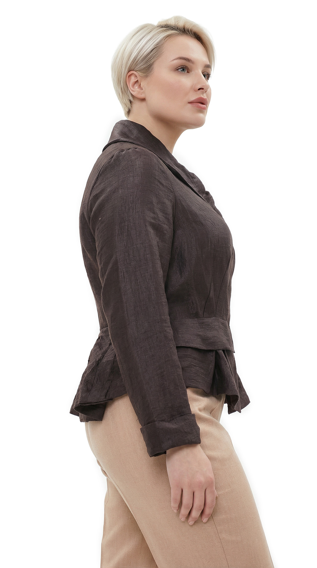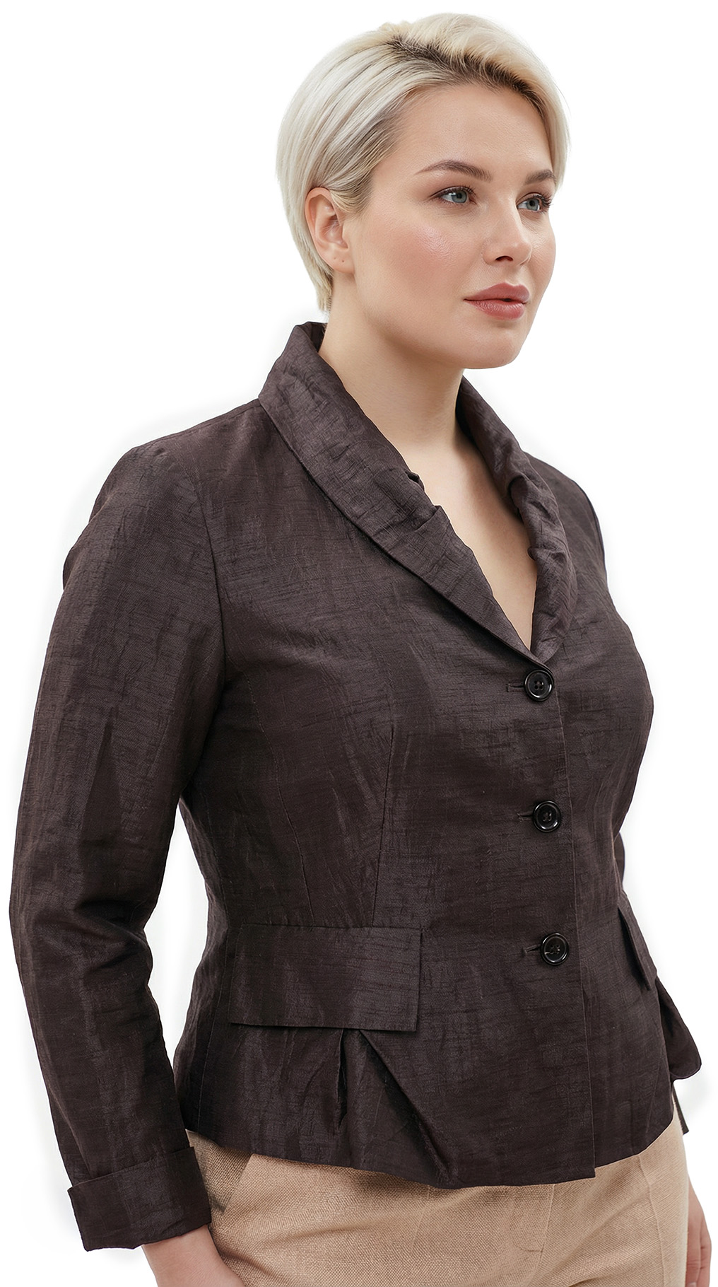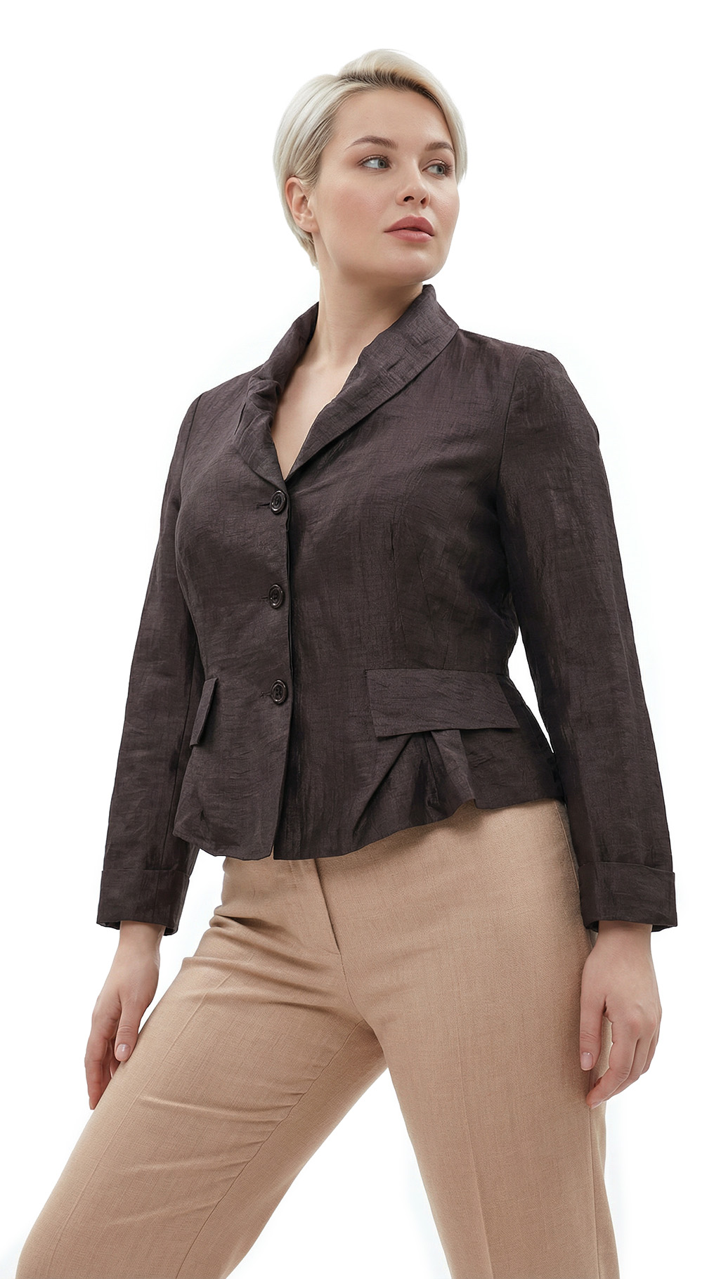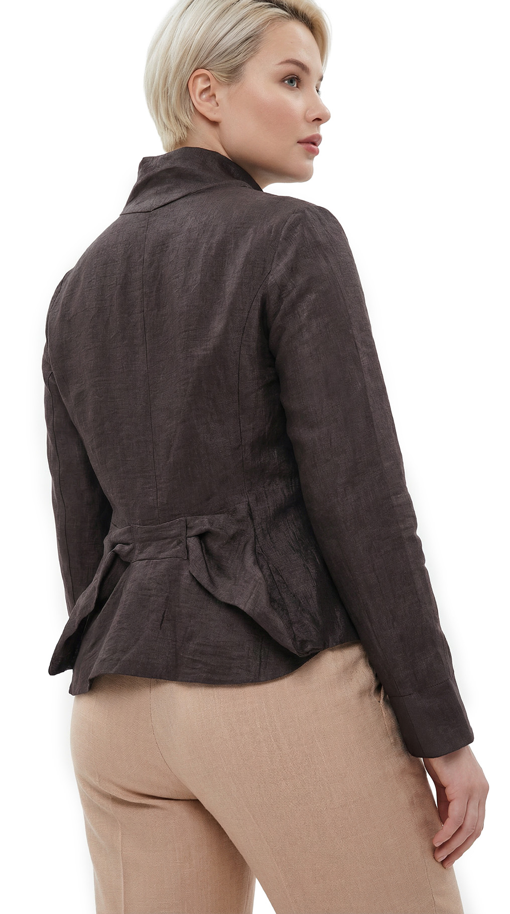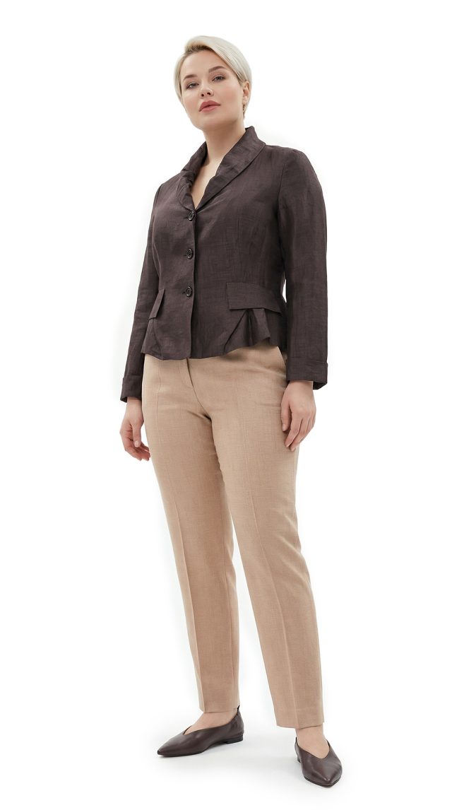 Новый дизайнерский льняной жакет французского бренда класса «люкс» Zapa Paris шоколадно-коричневого цвета. Женственный приталенный фасон с глубоким присборенным воротничком и пышной кокеткой по бедрам — смотрится элегантно, визуально подчеркивает талию и скрывает бедра. Длинный рукав, который можно подвернуть на нужную длину манжеты. Фальш-кармашки. Застежка на пуговки. Премиальное качество пошива и материалов. В составе 90% лен, 10% полиамид, на подкладе из 100% хлопка: ткань экстра качества: легкая, шелковистая, с благородным отливом. Состояние — новое, с фирменной биркой Zapa. Цена на бирке — 290 евро (!)