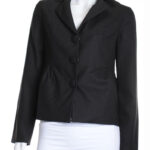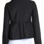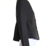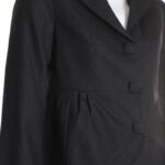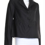Новый шерстяной жакет французского бренда класса «люкс» Zapa Paris темно-серого (почти черного, антрацит) цвета. Женственный полу-прилегающий фасон с кокеткой по талии и большими пуговками, обтянутыми тканью. Классический отложной воротник с резными лацканами. Длинный рукав. Стильный подклад с мелкий золотой горошек. К жакету есть брючки — можно подобрать комплект. Премиальное качество пошива и материалов. В составе 100% шерсть, на подкладе: ткань средней плотности, очень мягкая, и теплая. Эксклюзив: в единственном экземпляре в России. Состояние — новое, с фирменной биркой Zapa. Цена на бирке — 255 евро (!).