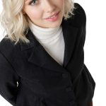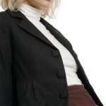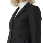 Новый шерстяной жакет французского бренда класса «люкс» Zapa Paris темно-серого (почти черного, антрацит) цвета. Женственный полу-прилегающий фасон с кокеткой по талии и большими пуговками, обтянутыми тканью. Классический отложной воротник с резными лацканами. Длинный рукав. Стильный подклад в мелкий золотой горошек. К жакету есть брючки — можно подобрать комплект. Премиальное качество пошива и материалов. В составе 100% шерсть, на подкладе: ткань средней плотности, очень мягкая, и теплая. Эксклюзив: в единственном экземпляре в России. Состояние — новое, с фирменной биркой Zapa. Цена на бирке — 255 евро (!).