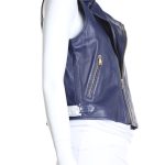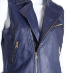 Новая кожаная жилетка Ralph Lauren сапфирово-синего цвета. Модный укороченный фасон «трансформер» с застежкой на скошенную золотую молнию: можно застегнуть до конца или отвернуть в лацканы. Шлевки по талии: можно приталить. Врезные кармашки на молниях. В составе: 100% натуральная кожа ягненка, на подкладе из пэ — кожа экстра качества: необычайно мягкая, шелковистая и приятная на ощупь. Эксклюзив, в единственном экземпляре в России. Оригинал из США. Состояние — новое, с фирменной биркой магазина Ralph Lauren.
