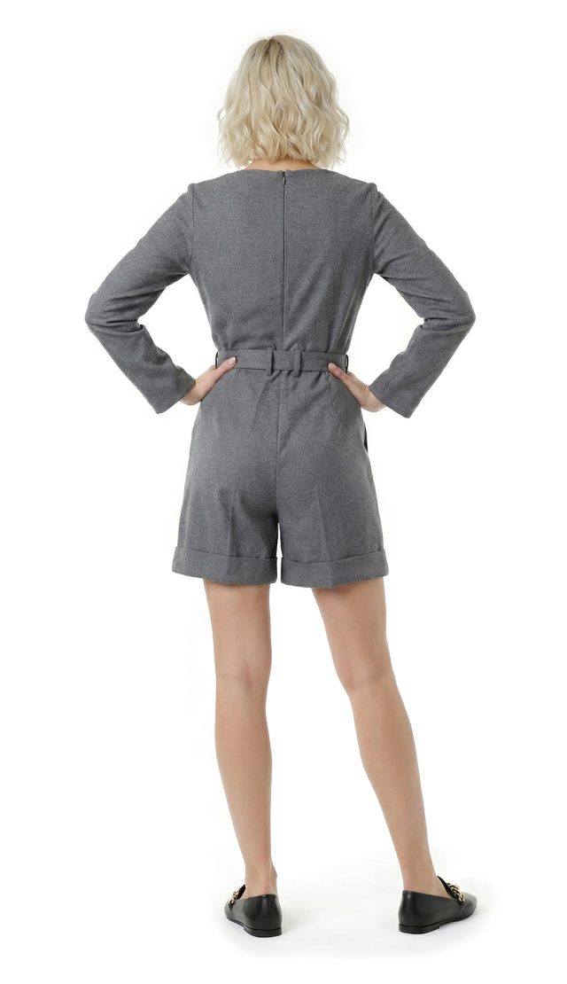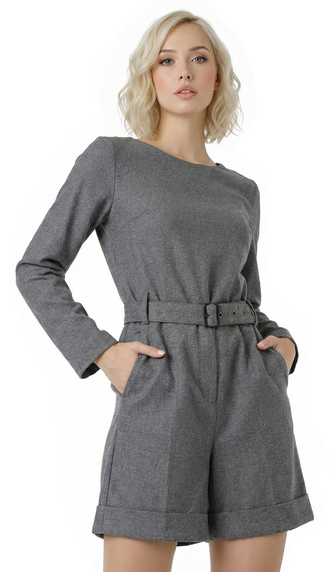 Новый комбинезон легендарного французского бренда Cop Copine серого цвета. Приталенный на пояс фасон с длинным рукавом. Шортики с высокой посадкой, широкими отворотами и врезными кармашками по бокам. Топ со скругленной горловиной. Застежка по спинке на длинную молнию. В составе: 63% п.э, 32% вискоза, 5% лайкра, без подклада: ткань плотная (теплая), мягкая, «плюшевая» на ощупь. Состояние — новое, с оригинальной запломбированной биркой Cop Copine.