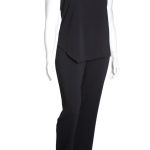 Новый трикотажный комбинезон концерна Max Mara (линия Marina Rinaldi) черного цвета. Топик без рукавов с V-горловиной, выгодно подчеркивающей зону декольте, и скошенной линией низа. Брючки прямые с посадкой по талии. Визуально стройнит фигурку и скрывает животик)). Застежка по спинке на молнию. В составе: 98% п.э, 2% эластан, на подкладе (топик) из 67% натурального ацетата, 33% п.э — ткань средней плотности, трикотажная, хорошо тянется. Пошив — Европа (Тунис). Состояние — новое, из аутлета концерна MaxMara (ярлык бренда надрезан — это политика аутлета).