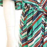 Оригинал. Новый трикотажный комбинезон концерна Max Mara в зелено-бордово-синюю полосу. Женственный фасон с зауженными брючинами и топиком с коротким приспущенным рукавом «летучая мышь». Резинка по талии с подвязкой на пояс (в комплекте). Красивая горловина «лодочка». Врезные кармашки по бокам. Спинка с вырезом на запах. Пошив — Румыния. В составе: 93% вискоза, 7% эластан, без подклада — ткань экстра качества: мягкая, шелковистая, эластичная. Состояние — новое, из аутлета концерна MaxMara (ярлык бренда надрезан — это политика аутлета).