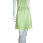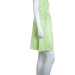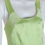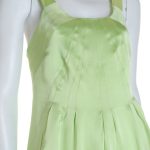 Новое шелковое платье итальянского бренда Bessini (коллекция B.B) салатового (неоново-зеленого) цвета. Приталенный фасон на широких бретелях, перекрещивающихся по спинке. Скругленная горловина с красивыми клинышками по груди. Юбочка полу-солнце со складочками от талии. Застежка сбоку на молнию. В составе: 100% натуральный шелк, на подкладе из хлопка — ткань легкая, мягкая, атласная, с характерным блеском натурального шелка. Состояние — новое с фирменной биркой Bessini.