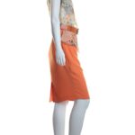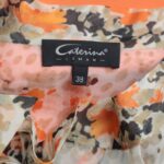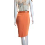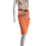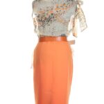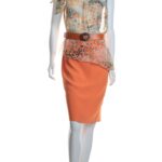 Яркое дизайнерское платье польского бренда Caterina Leman. Юбочка карандаш оранжевого цвета. Топ «безрукавка» с баской из тонкого полупрозрачного шифона с цветочным принтом и бантом на правом плече. Широкий пояс с выделкой «под питона» и большой пряжкой. Бирка с составом срезана — экспертная оценка — п.э (юбочка), шелк (топ), эко-кожа (пояс). Состояние — идеальное, как новое.