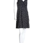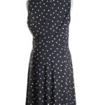 Женственное платье Chaps by Ralph Lauren в крупный белый горох на черном фоне. Приталенный покрой без рукавов с запахом на груди и расклешенной юбкой. В составе: 95% полиэстр, 5% эластан — ткань трикотажная, хорошо тянется. Состояние — отличное.