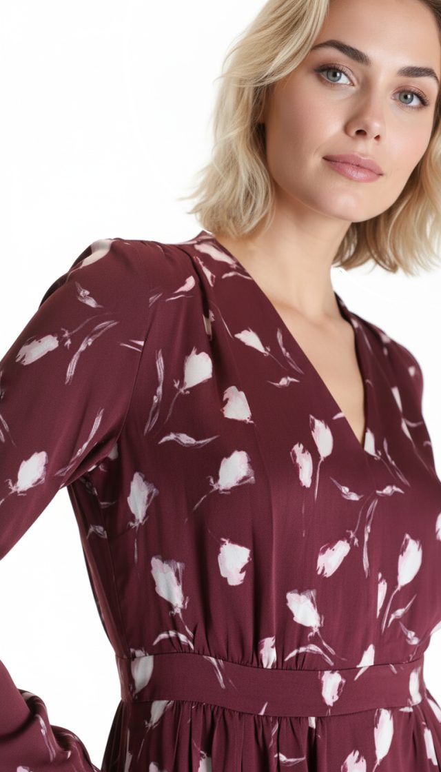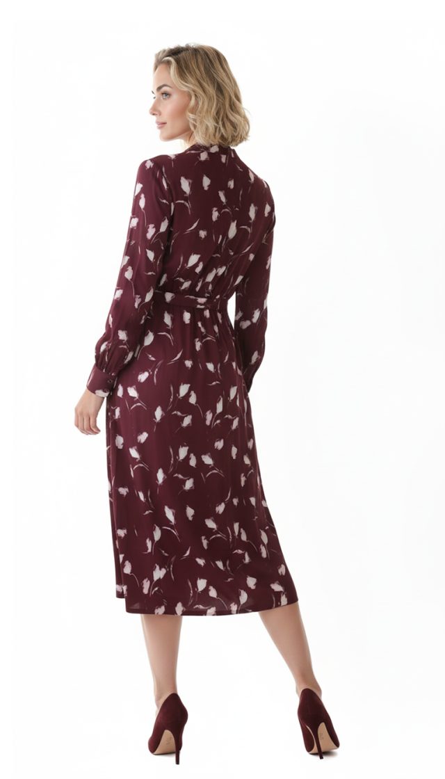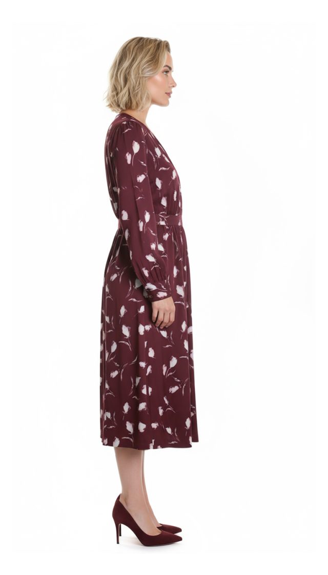 Новое шелковое платье премиального американского бренда Classiques Entier темно-вишневого цвет с цветочным принтом. Приталенный покрой с V-образным вырезом горловины, акцентирующим линию груди и длинным рукавом с манжетами на пуговках. Драпировка по талии и плечам придает особую женственность фасону. Боковая застежка на молнию. Материал — нежный, шелковистый, очень приятный на ощупь. В составе: 92% натуральный шелк, 8% спандекс, на подкладе. Состояние — новое, с биркой. Цена на бирке — 288$ (!)