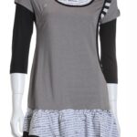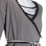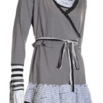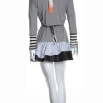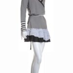 Новое платье легендарного французского бренда Cop Copine в серо-бело-черных тонах. Интересный двухслойный фасон из платья и болеро. Платье с воланами, коротким рукавом с вшитой трикотажной вставкой, и фирменной аппликацией по спинке. Болеро на запах с подвязкой на кантик, V-образной горловиной, декорированной кружевом, и рукавами с завязками. В составе: 68% хлопок, 28% полиамид, 4% эластан, без подклада: ткань легкая, мягкая, хорошо драпируется. Состояние — новое, с оригинальной запломбированной биркой Cop Copine.