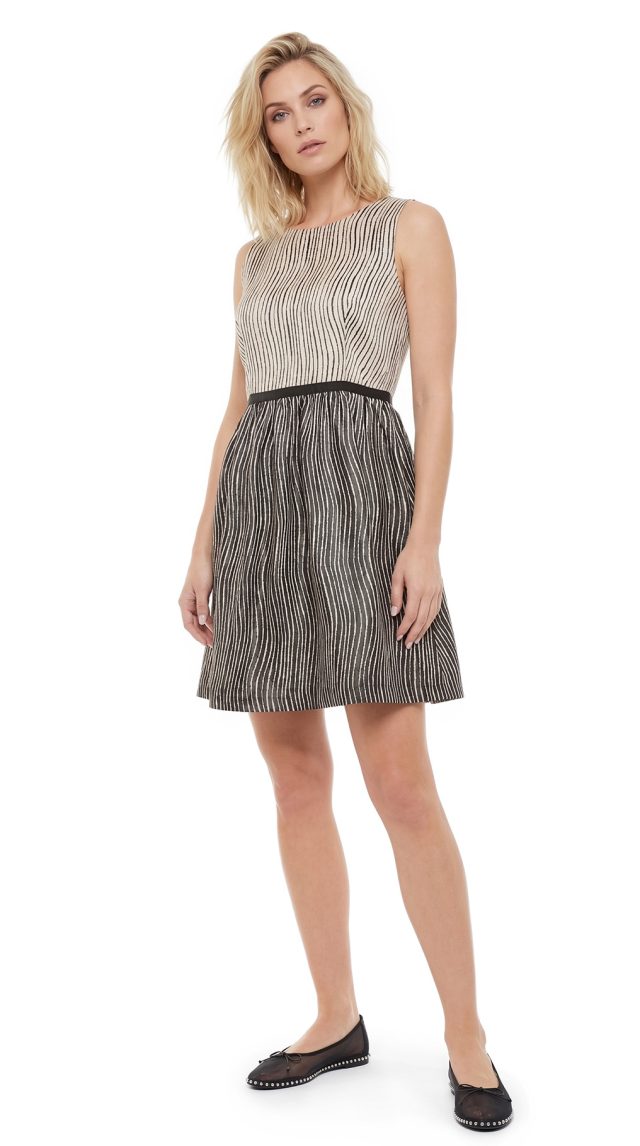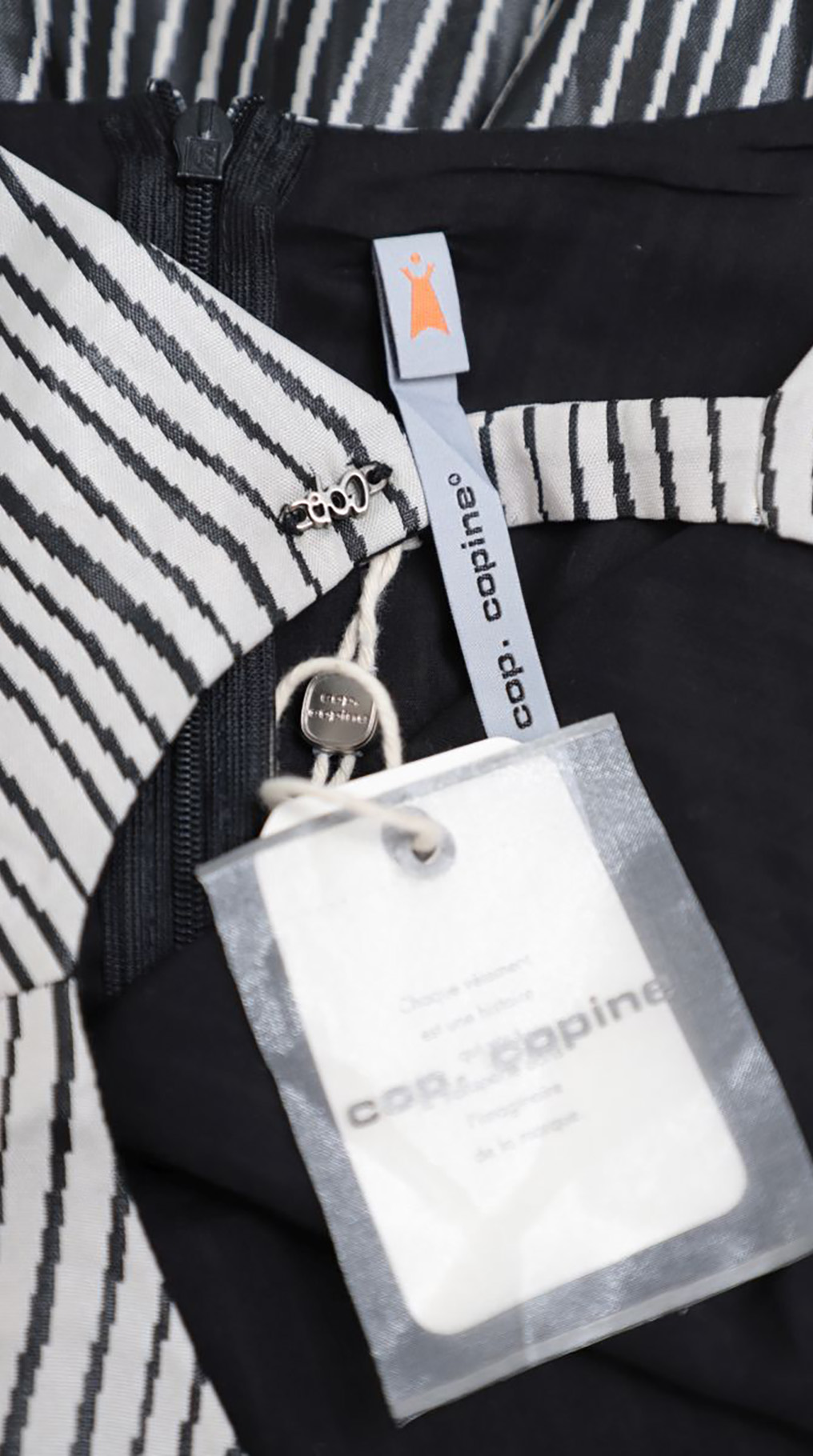 Новое летнее платье Cop Copine в черно-белую полоску. Приталенный фасон «безрукавка» с вырезом по спинке и присборенной пышной юбочкой с завышенной талией. Застежка по спинке на молнию и фирменную пуговку. В составе: 100% п.э, верх на подкладе из 100% хлопка — ткань легкая, хорошо держит форму. Состояние — новое, с фирменной биркой Cop Copine.