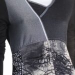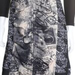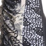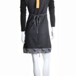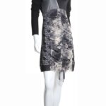 Новое трикотажное платье французского бренда Cop Copine черно-серого цвета с эффектным принтом граффити и кружевной сеточкой по бокам. Полу-приталенный фасон с длинным рукавом и подвязкой на кантик по талии и подолу. Декоративные кружочки-«якори» под дерево на горловине. Без застежки. В составе: 100% хлопок, на хлопковом подкладе: ткань мягкая, приятная к телу, хорошо тянется. Состояние — новое, с биркой.