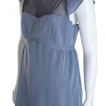 Новое платье легендарного французского бренда Cop Copine серо-голубого цвета. Женственный фасон с завышенной талией и удлиненной юбочкой «трапеция». Романтичный короткий рукав с оборкой и вырезом по линии плеча. Гипюровая вставка «сеточка». Рельефная линия груди. Застежка сбоку на молнию. В составе: 100% хлопок, юбочка на подкладе из 100% вискозы — ткань легкая, мягкая, приятная в носке. Состояние — новое, с оригинальной запломбированной биркой Cop Copine.