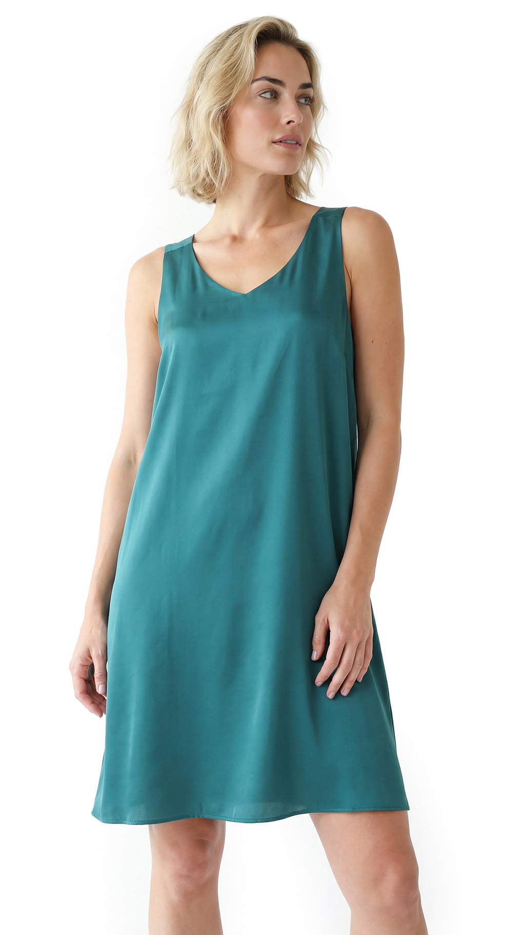 Полу-обхват талии: 54 см (свободный в талии и бедрах фасон «трапеция»)