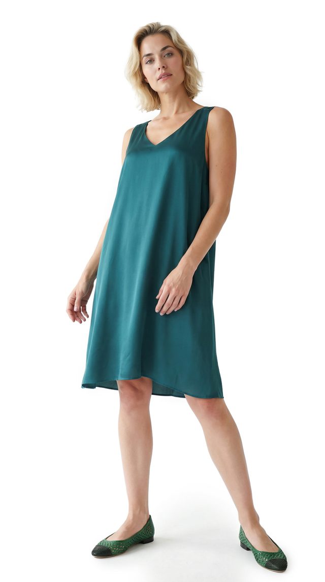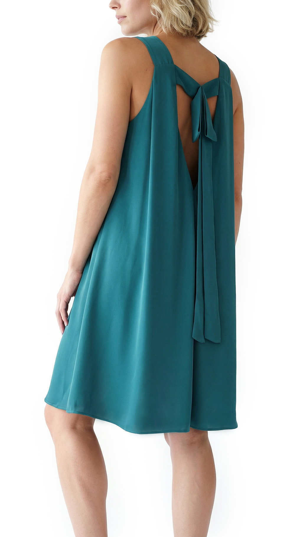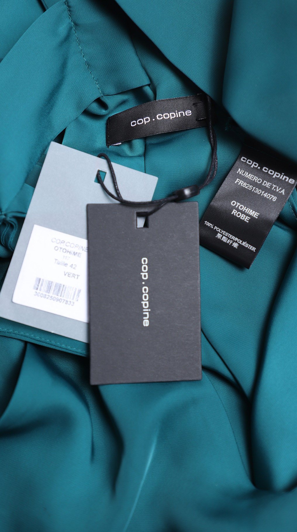 Новое платье легендарного французского бренда Cop Copine редкого изумрудного цвета. Свободный фасон «трапеция» с V-вырезом горловины, широкими складками и глубоким секси вырезом по спинке, который красиво декорирован бантом. Стильный и оригинальный дизайн. В составе: 100% п.э, без подклада: ткань средней плотности, мягкая, бархатистая. Пошив — Португалия. Состояние — новое, с оригинальной запломбированной биркой Cop Copine.