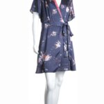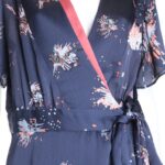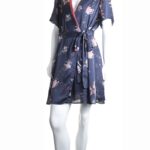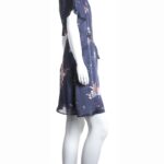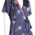 Новое платье легендарного французского бренда Cop Copine темно-синего цвета с розово-голубым принтом. Женственный фасон на запах с глубоким вырезом горловины, декорированным яркой контрастной вставкой. Короткий рукав. Юбочка — трапеция с застежкой на потайную пуговку и подвязкой на пояс. Смотрится модно и стильно. В составе: 100% п.э, на подкладе из 100% натуральной вискозы (юбочка): ткань мягкая, шелковистая. Состояние — новое, с оригинальной запломбированной биркой Cop Copine.