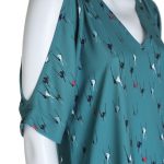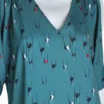 Новое платье легендарного французского бренда Cop Copine цвета зеленого мха с фирменным узнаваемым принтом. Свободный фасон «трапеция» с V-вырезом горловины и открытыми плечами. Рукав реглан длиной 1/2. В составе: 100% п.э, без подклада: ткань средней плотности, бархатистая. Пошив — Португалия. Состояние — новое, с оригинальной запломбированной биркой Cop Copine.