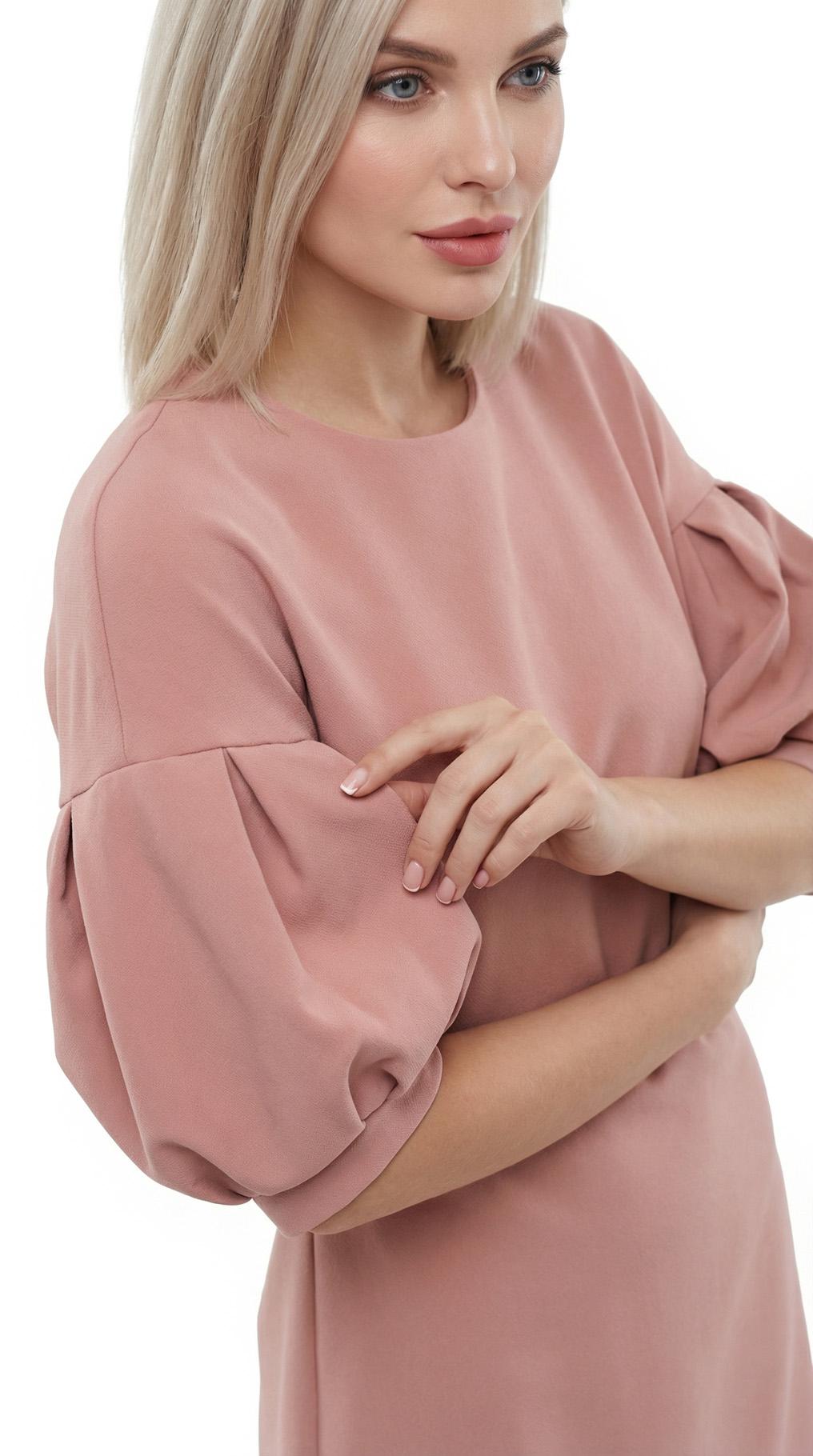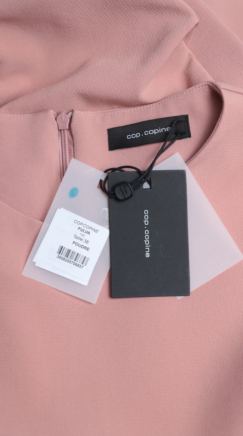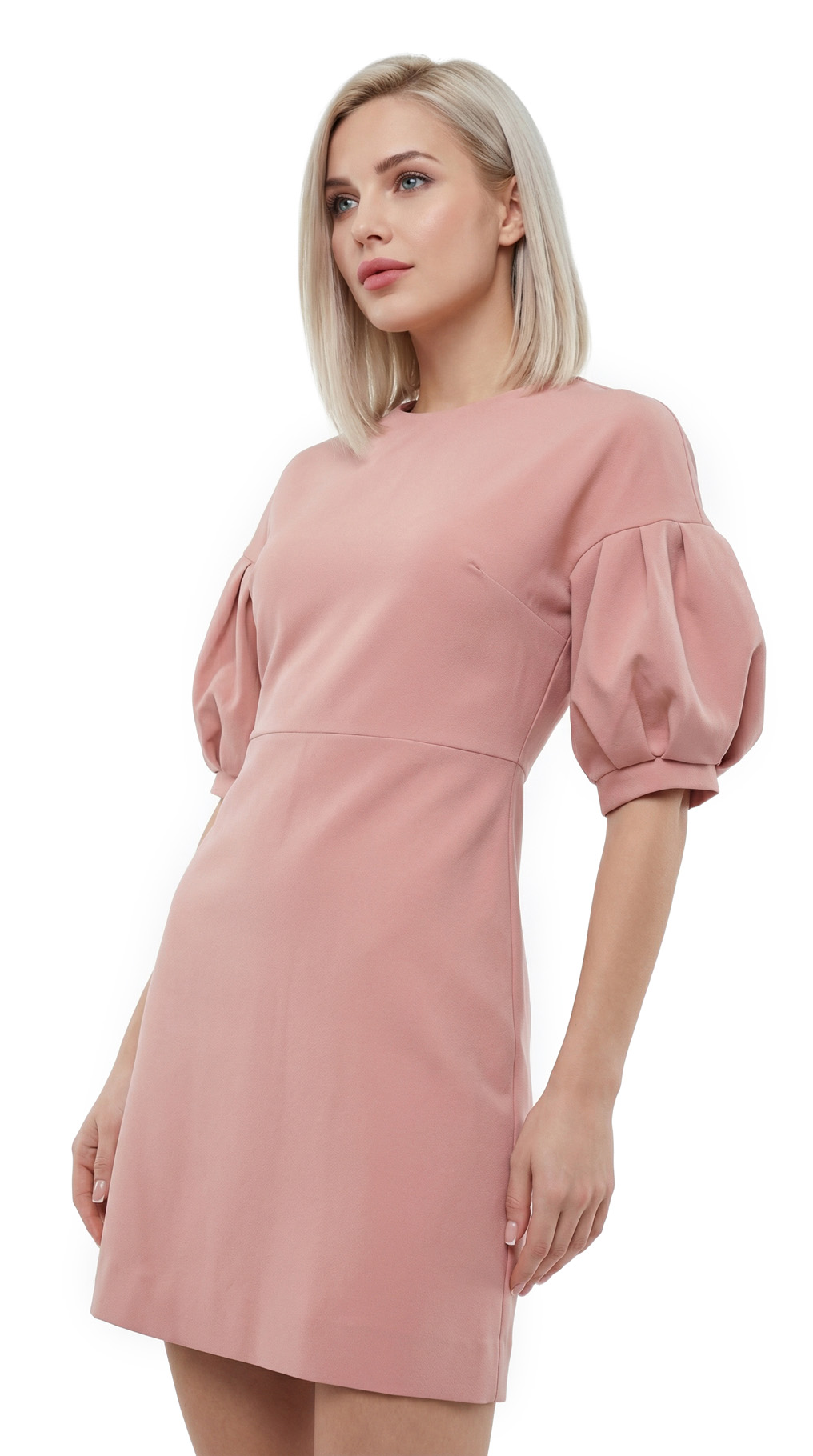 Новое элегантное платье легендарного французского бренда Cop Copine модного пудрового цвета с коротким рукавом «фонарик». Полу-прилегающий фасон со слегка расклешенной от талии юбочкой. Застежка на молнию по спинке. В составе: 90% п.э, 10% эластан, без подклада. Ткань плотная, шелковистая, приятная к телу. Состояние — новое, с оригинальной запломбированной биркой Cop Copine.