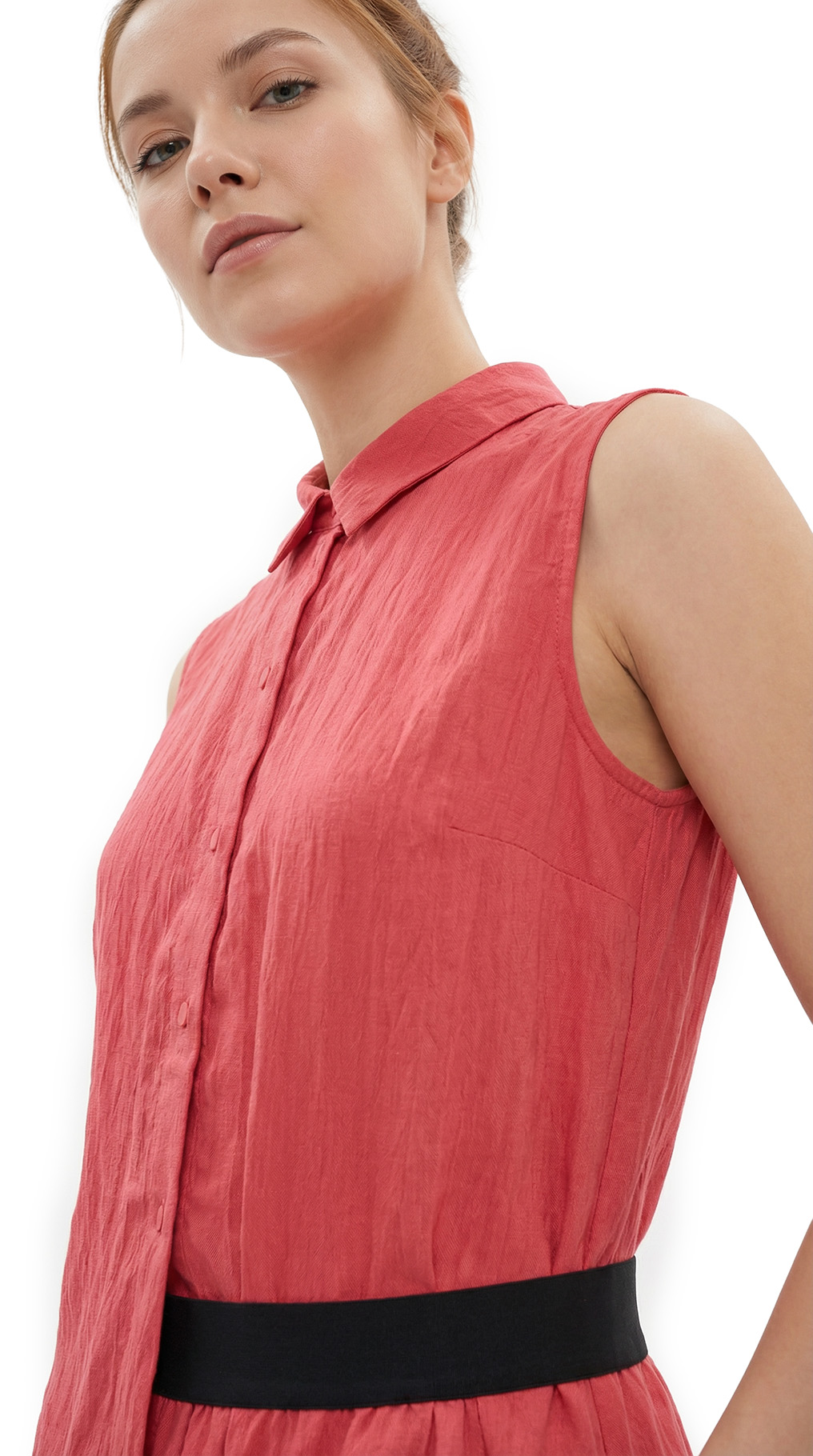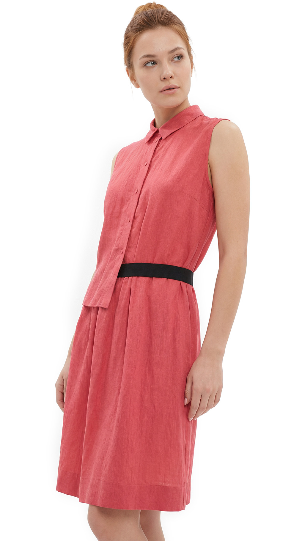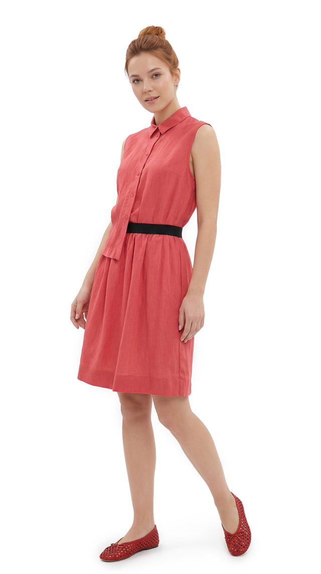 Новое платье легендарного французского бренда Cop Copine яркого кораллового цвета. Интересный фасон «безрукавка» с приспущенным с одной стороны топиком, присборенной юбочкой на резинке и классическим воротничком. Застежка на кнопочки. В составе: 86% вискоза, 14% полиамид, без подклада: ткань плотная, тяжелая, хорошо драпируется и садится по фвигурке, по фактуре — легкая «жатка». Состояние — новое, с оригинальной запломбированной биркой Cop Copine.