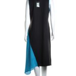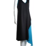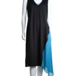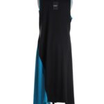 Новое летнее удлиненное платье DKNY черного цвета с асимметричной атласной вставкой и отделкой кантиком по горловине. Без застежки. В составе: 60% хлопок, 40% модал. Без подклада. Ткань легкая, мягкая, шелковистая. Состояние — новое, с фирменной биркой DKNY. Цена на бирке — 89$.