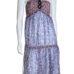 Новое шелковое платье итальянского бренда Eighth Sin с цветочным принтом в сиренево-розовых тонах. Топ на резинке с подвязкой на витой темно-коричневый кантик с фирменным шильдиком, стилизованным под дерево. Юбочка со вставками из резинки по талии и бедрам. В составе: 100% натуральный шелк шифон, на подкладе из п.э — ткань легкая, воздушая. Состояние — новое с фирменной биркой Eighth Sin.