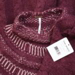 Новое вязаное шерстяное платье Free People вишневого цвета. Женственный фасон: приталенный топ и юбочка полу-солнце. Красивая вязка косами. Отделка горловины серебристыми нитями и золотистыми пайетками. Воротничок стойка. Короткий рукав. Без застежки. В составе: 48% шерсть, 25% акрил, 2% альпака. Ткань мягкая, комфортная к телу, хорошо тянется. Состояние — новое, с фирменной биркой магазина Free People (бренд линейки Ralph Lauren).
