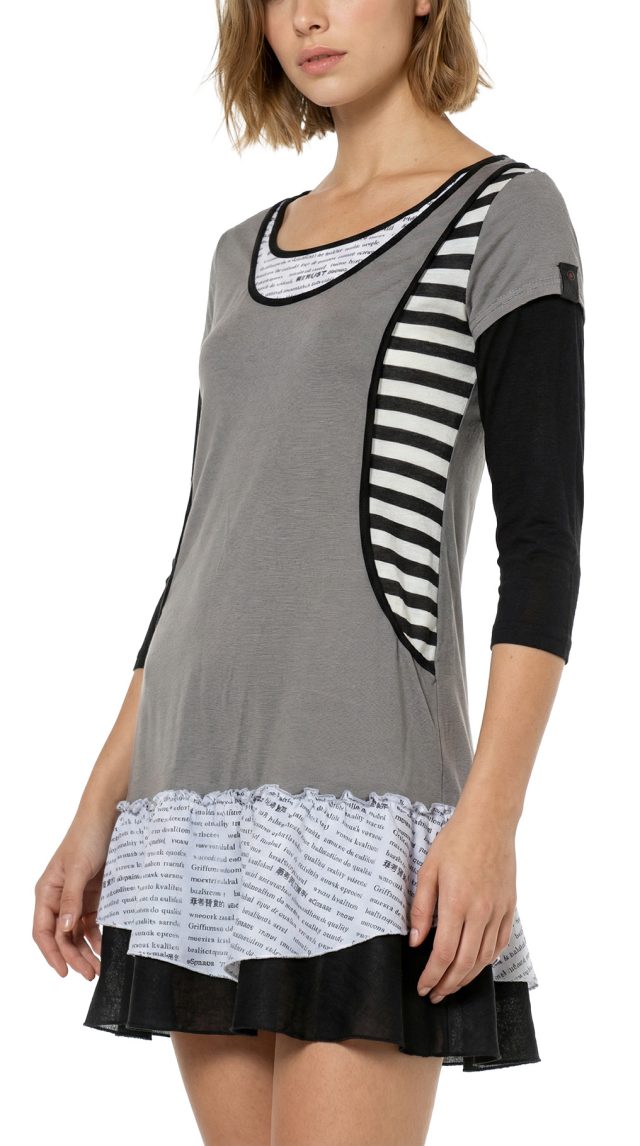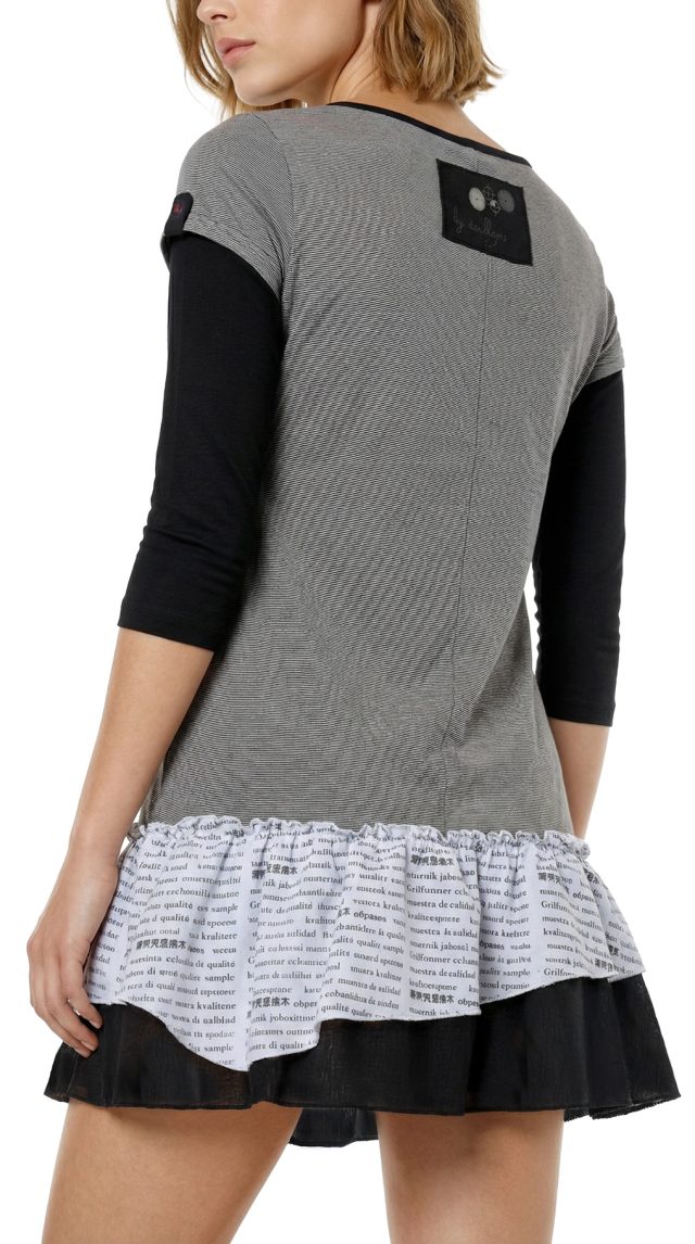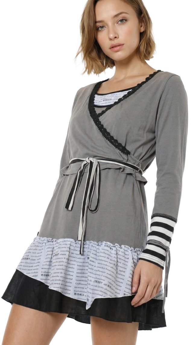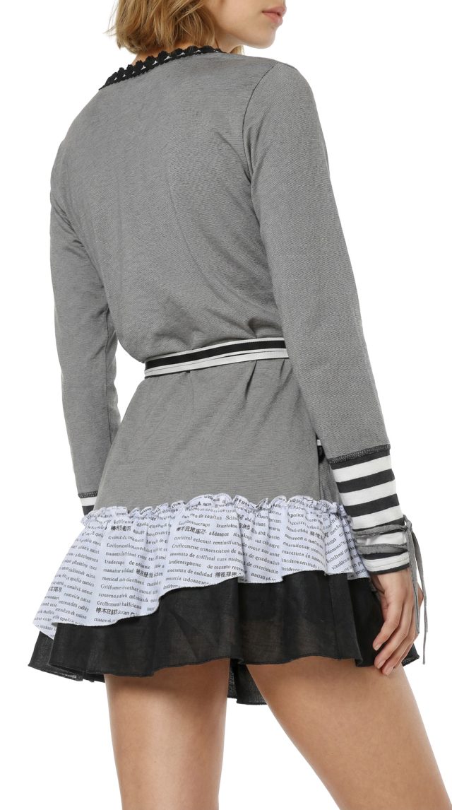 Новое платье легендарного французского бренда Cop Copine в серо-бело-черных тонах. Интересный двухслойный фасон из платья и болеро. Платье с воланами, коротким рукавом с вшитой трикотажной вставкой, и фирменной аппликацией по спинке. Болеро на запах с подвязкой на кантик, V-образной горловиной, декорированной кружевом, и рукавами с завязками. В составе: 68% хлопок, 28% полиамид, 4% эластан, без подклада: ткань легкая, мягкая, хорошо драпируется. Состояние — новое, с оригинальной запломбированной биркой Cop Copine.