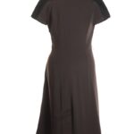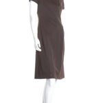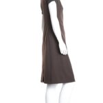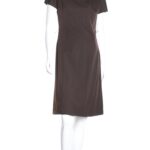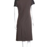Элегантное шерстяное платье Jaeger-LeCoultre шоколадного цвета с контрастной черной вставкой по горловине и плечам. Приталенный фасон с коротким рукавом. Вырез по линии декольте с застежкой на большую пуговку. Шлицы под ремень (в комплект не входит). Застежка сбоку на молнию. В составе — 98% шерсть мериноса (WV), 2% эластан: ткань экстра качества: мягкая, приятная к телу, на подкладе. Состояние — отличное (сверху от молнии ткань немного посеклась: можно заштопать, не будет видно).