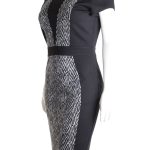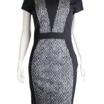 Оригинал из Италии. Новое элегантное платье футляр итальянского бренда Rinascimento (коллекция Kitana) черного цвета с принтом «гусиной лапка», который визуально стройнит фигурку. Женственный приталенный покрой с коротким рукавом и застежкой по спинке на молнию. В составе: 67% п/э, 30% вискоза, 3% эластан, без подклада — ткань плотная, эластичная (трикотажная). Состояние — новое, с фирменной биркой Kitana.