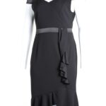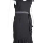 Новое платье итальянского бренда Kitana by Rinascimento черного цвета на бретелях. Красивое оформление декольте, зауженная юбочка с воланами. Атласный кант по талии, и плечикам. Застежка по спинке на молнию. В составе — 96% п/э, 4% эластан, без подклада: ткань плотная, по фактуре «крепе». Смотрится стильно и женственно. Состояние — новое, с фирменной биркой Kitana.