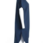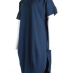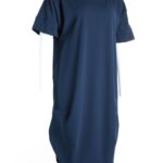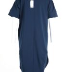 Новое платье итальянского бренда Kitana by Rinascimento темно-синего, чернильного, цвета. Свободный удлиненный фасон «баллон», прикрывающий колена, с полукруглым стянутым подолом, со шличками по бокам. Короткий приспущенный рукав «летучая мышь». Без застежки. В составе — 95% п/э, 8% эластан, без подклада: ткань плотная, хорошо тянется. Состояние — новое, с фирменной биркой Kitana.