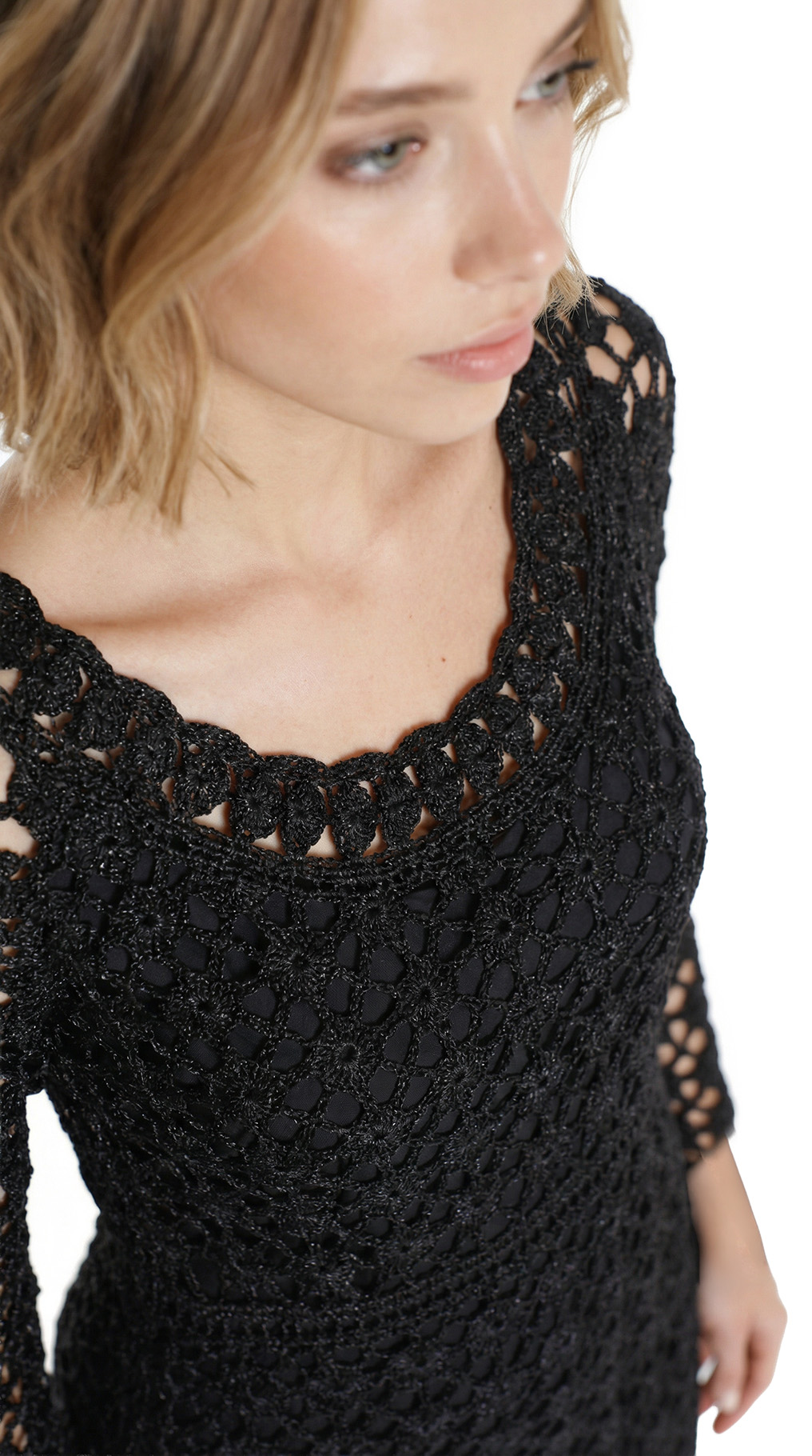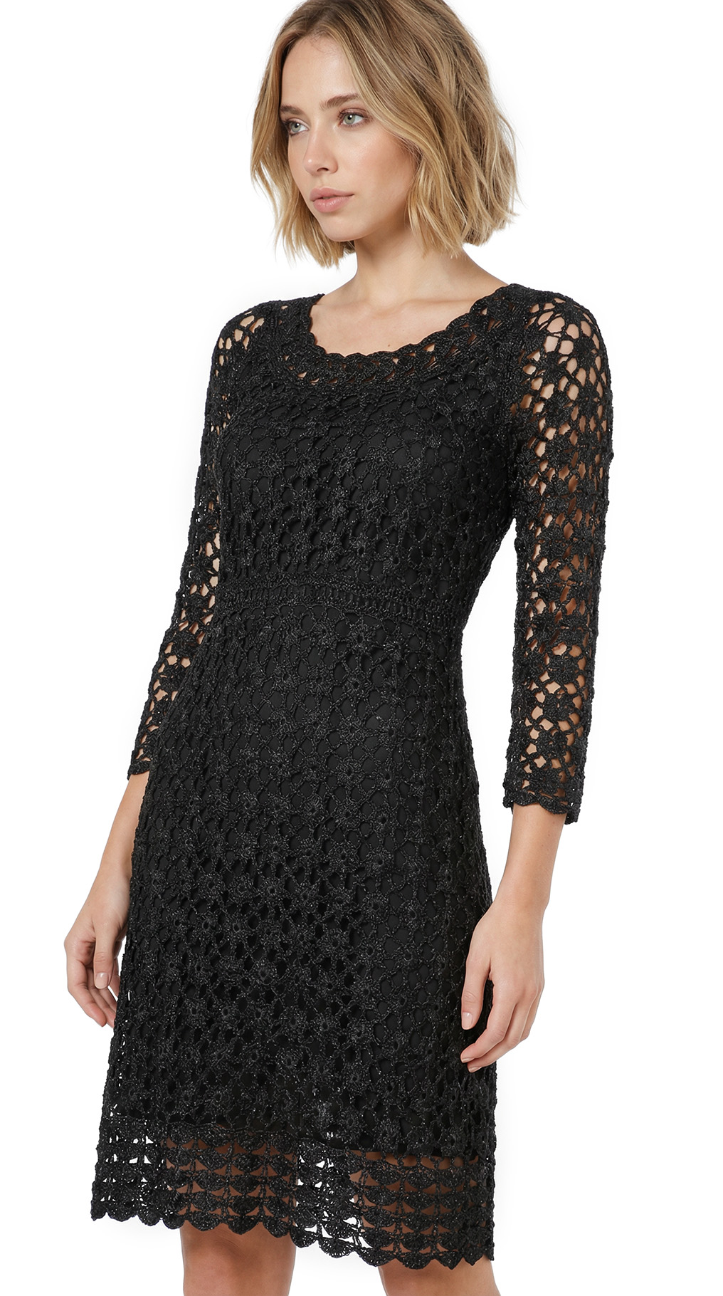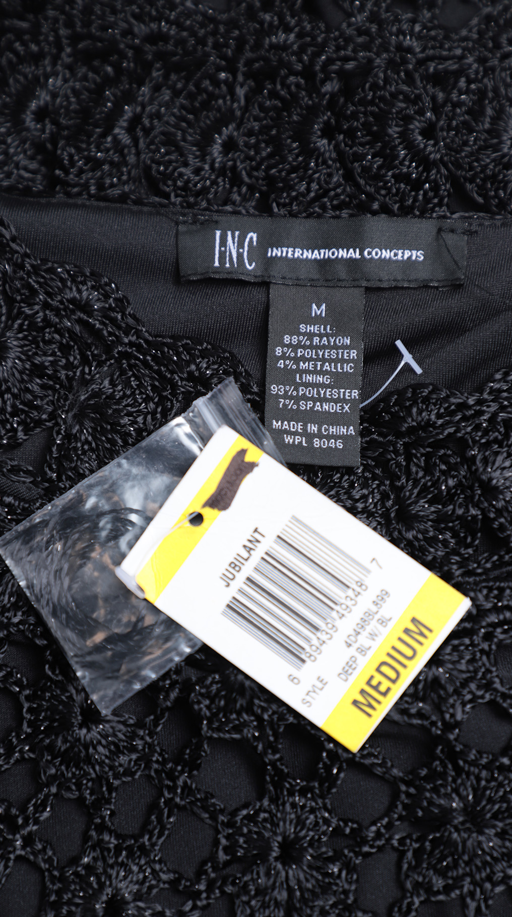 Новое женственное кружевное платье американского бренда Inc International Concepts черного цвета. Облегающий силуэт «секси». Кружевная сеточка на трикотажной вискозной основе. Скругленный вырез горловины. Длинный рукав без подклада. Застежка сзади на яркую, золотую, молнию. В состаев: 88% вискоза, 8% п.э, 4% металлик, на подкладе из 93% пэ, 7% спандекса — ткань основы плотная, отлично облегает и подчеркивает фигурку. Состояние — новое, с биркой.