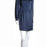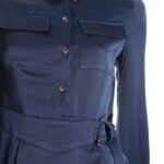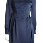 Новое платье Love Republic темно-синего цвета. Женственный фасон с длинным рукавом, вшитым поясом с серебряной пряжкой и накладными кармашками. Застежка спереди на пуговки и сбоку на молнию (разошлась, требуется ремонт). В составе: 100% п.э., без подклада — ткань легкая, мягкая, шелковистая. Состояние — новое, без бирки (распродажа стока магазина).