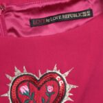Новое платье Love Republic красно-розового цвета с яркой аппликацией сердечка на груди. Женственный приталенный фасон с юбочкой полу-солнце и рукавом 3/4. Застежка по спинке на молнию. Шлицы под ремень в боковых швах (фото для примера, в комплект не входит). В составе: 63% п.э, 32% вискоза, 5% эластан, на подкладе из 97% п.э, 3% эластана — ткань плотная, мягкая. Состояние — новое, без бирки (распродажа стока магазина).