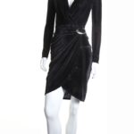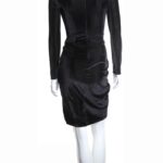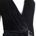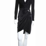 Новое женственное платье Love Republic черного цвета. Приталенный фасон с длинным рукавом, глубоким вырезом горловины и запахом по юбочке на большую серебристую пряжку. Застежка по спинке на молнию. В составе: 92% п.э, 8% эластан, без подклада — ткань плотная, мягкая, хорошо тянется, по фактуре в мелкий рубчик. Состояние — новое, без бирки (распродажа стока магазина).