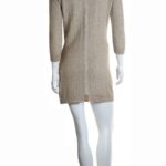 Трикотажное платье Massimo Dutti светло-бежевого цвета с золотистыми металлизированными нитями. Полу-приталенный покрой с приспущенным рукавом длиной 3/4 и скругленной горловиной. Бирка с составом срезана: экспертная оценка — хлопок, вискоза — ткань плотная, тяжелая, эластичная. Пошив — Турция. Состояние — отличное.