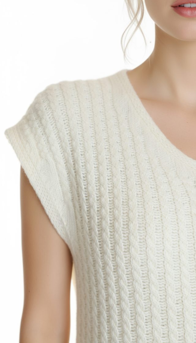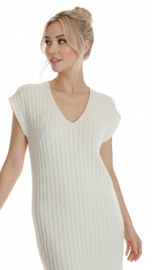 Оригинал. Новое вязаное платье Massimo Dutti теплого молочного цвета. Полу-приталенный покрой с коротким приспущенным рукавом и V-образной горловиной. Шлички в боковых швах для комфорта в движении. В составе: 45% шерсть, 30% вискоза, 20% полиамид, 5% кашемир — ткань плотная, объемной, фактурной вязкой «косами». Пошив — Испания. Состояние — новое, с оригинальной биркой Massimo Dutti.