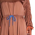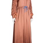 Новое летнее платье концерна Max Mara (линия Marina Rinaldi) шоколадно-коричневого цвета в мелкую точку. Свободный удлиненный фасон «в пол» с завязкой на синий кантик по талии (можно приталить) и длинным присборенным рукавом на широкой манжете с ярким рыжим кантиком. Скругленная горловина с яркой салатовой окантовкой. В составе: 100% п.э, на подкладе из п.э: ткань легкая, шелковистая, приятная к телу. Пошив — Европа (Румыния). Состояние — новое, из аутлета концерна MaxMara (ярлык бренда надрезан — это политика аутлета).