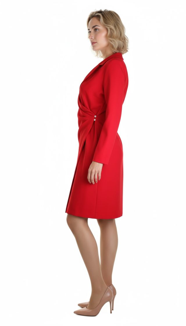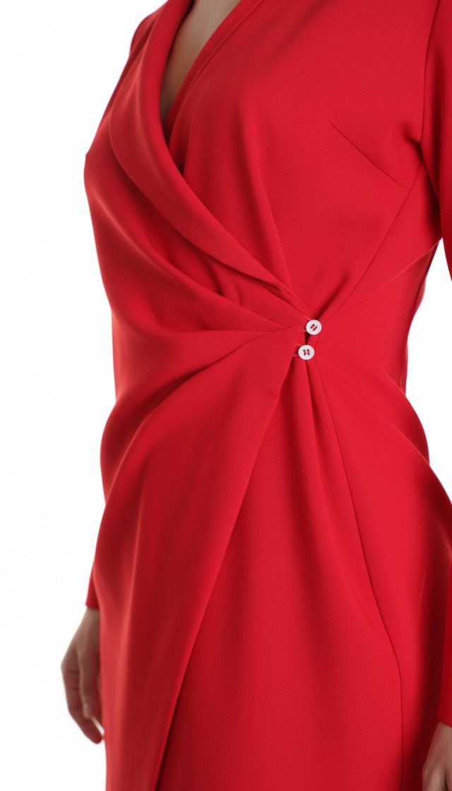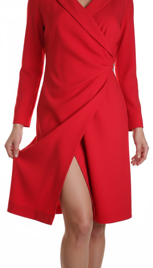 Оригинал с биркой. Новое платье итальянского концерна Max Mara (линия EMME Marella) глубокого красного цвета. Женственный фасон на запах с V-вырезом декольте и асимметричной линия низа. Застежка с подвязкой на внутренний кантик и две пуговки сбоку. Пошив — Европа (Марокко). В составе: 75% п.э, 19% вискоза, 6% эластан: ткань экстра качества: средней плотности, бархатистая, фактурная (мелкое «крепе»). Состояние — новое, с оригинальной биркой EMME Marella. Цена на бирке — 139.90 евро.