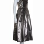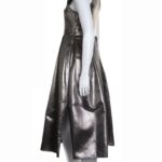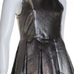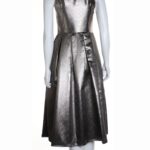 Новое стильное платье Max Mara серебристо-бронзового цвета. Топ «безрукавка» со скругленной горловиной и застежкой на пуговку по спинке. Юбочка полу-солнце с широкими складками и шличками по бокам. Врезные кармашки в боковых швах. Застежка сбоку на молнию. В составе 50% хлопок, 42% п.э, 8% фибра металлик, на подкладе из 62% натурального ацетата, 38% п.э: ткань экстра качества — мягкая, с великолепным отливом. Состояние — новое, из аутлета концерна MaxMara (ярлык бренда надрезан — это политика аутлета).