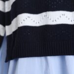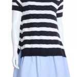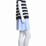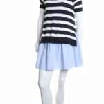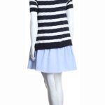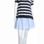 Новое платье концерна Max Mara в сочетании голубого и темно-синего (почти черного) с белым цвета. Интересный фасон «2-в-1»: хлопковое платье «безрукавка» подшито на воздушные петли под джемпер с коротким рукавом (можно носить как вместе, так и по-раздельности). Платье на бретелях покроя «трапеция» со скругленной горловиной и объемным воланом по низу. Джемпер также скроен по трапеции с рукавом реглан и шличками в боковых швах. Без застежки. В составе 100% хлопок (платье), 96% хлопок, 4% п.э (джемпер), без подклада. Состояние — новое, из аутлета концерна MaxMara (ярлык бренда надрезан — это политика аутлета).
